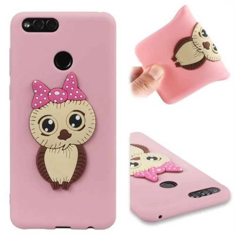Aranyos zselés tok a Honor 7X számára 3D motívummal, rózsaszínű bagollyal