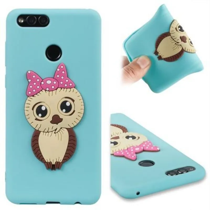 Fiatalos megjelenésű és lányos gél védőborítás a Honor 7X készülékhez 3D motívumos bagollyal világoskék színben
