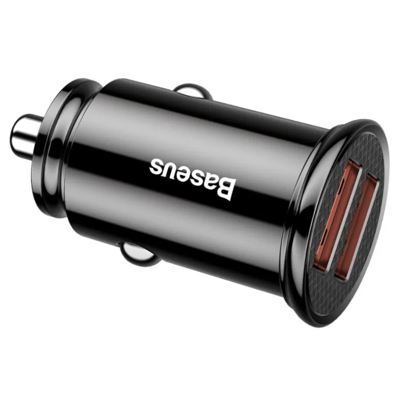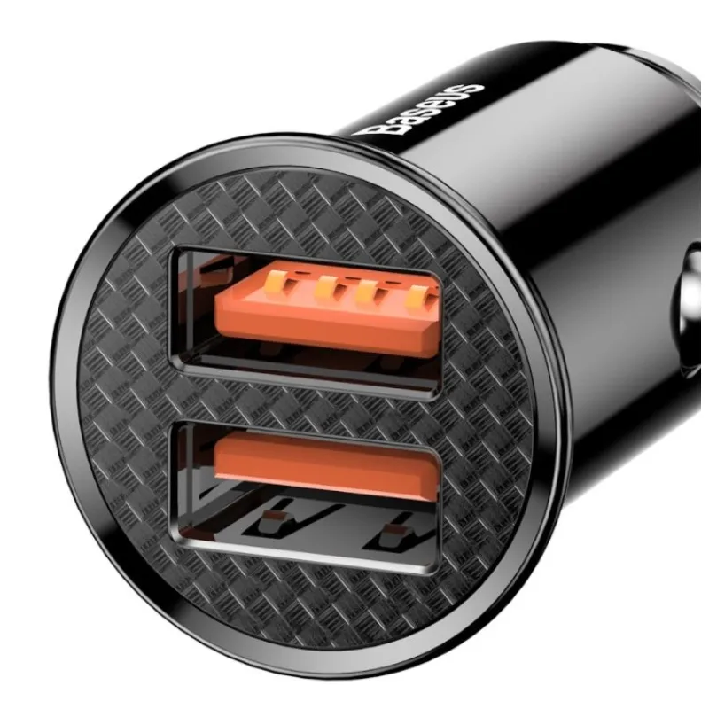 Baseus CCALL-YD01 kör alakú autós töltő 2xUSB QC3.0 30W fekete színű