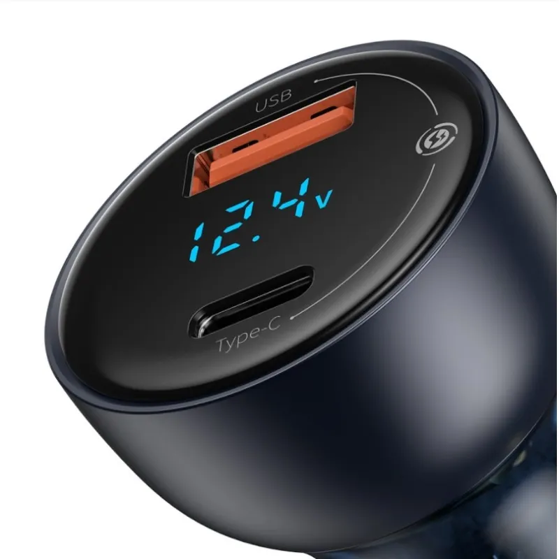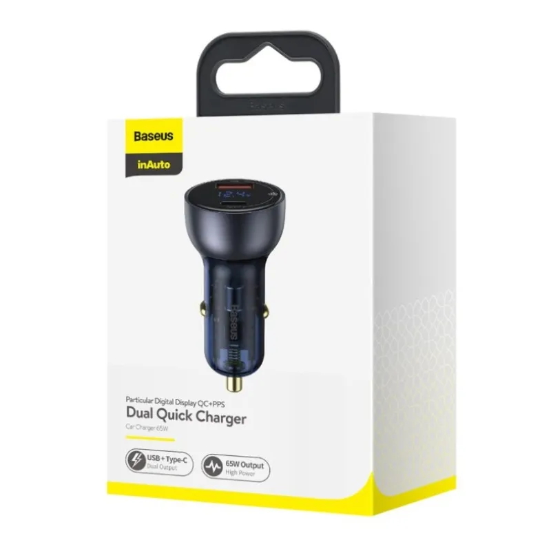 Baseus CCKX-C0G Különleges autós töltő Digitális kijelző 2xUSB 65W szürke