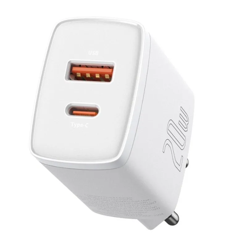 Baseus CCXJ-B02 Kompakt gyorstöltő USB/USB-C 20W Fehér