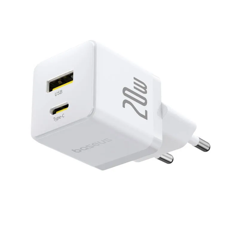 Baseus Palm Gyorstöltő USB-A + USB-C 20W Fehér