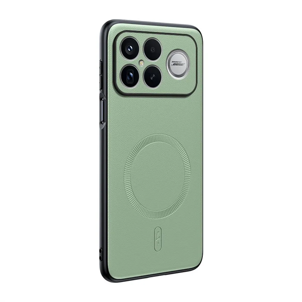 A minimalista dizájn letisztult vonalakkal rendelkezik, és modern és letisztult megjelenést kölcsönöz ennek a Bevonatos gél toknak műbőrrel és MagSafe-feltéttel, amely tökéletesen illeszkedik a Xiaomi Poco F8 Ultra 5G készülékhez. A zöld felület elegáns, kellemes tapintású, és egyúttal növeli a tartósságot a mindennapi használat során. A tok hátulján található integrált mágneses kör teljes kompatibilitást biztosít a MagSafe tartozékokkal és a vezeték nélküli töltéssel. Ez a **tok** egyike azon **tokoknak**, amelyek a visszafogott stílust, a praktikus védelmet és a minőségi kidolgozást ötvözik. ✅【Prémium hibrid anyagok】Tartós TPU és PC anyagból készült, PU bőr külsővel, amely ötvözi az erőt, a rugalmasságot és a luxus érzetet. ✅【Több jelenettel kompatibilis】Beépített N52 mágneses gyűrű, amely teljes mértékben kompatibilis a mágneses töltőkkel, mágneses külső akkumulátorokkal és mágneses autós tartókkal. ✅【Luxus sima bőr bevonat】Az importált PU bőr kifinomult textúrát kínál, amely ujjlenyomat-álló, csúszásmentes és kényelmes fogást biztosít. ✅【Átfogó védelem】A kamera és a képernyő körüli kiemelt élek az ütéscsillapító sarkokkal megbízható esés- és karcállóságot biztosítanak. ✅【Stílusos és funkcionális kialakítás】A tartósságot a vékony és könnyű profillal ötvözi, modern és elegáns megjelenést biztosítva. miközben biztosítja a kényelmet és a praktikumot a mindennapi használat során.