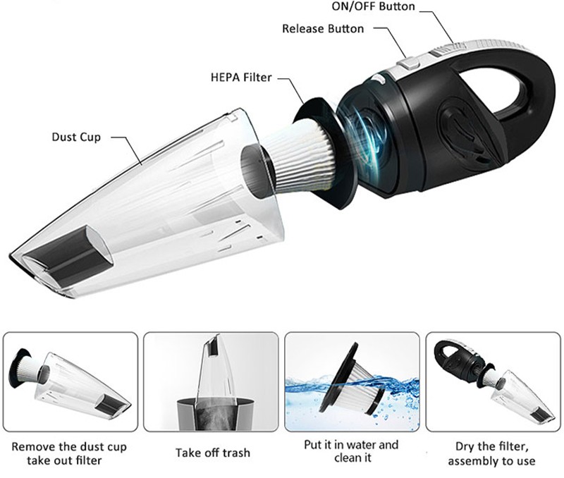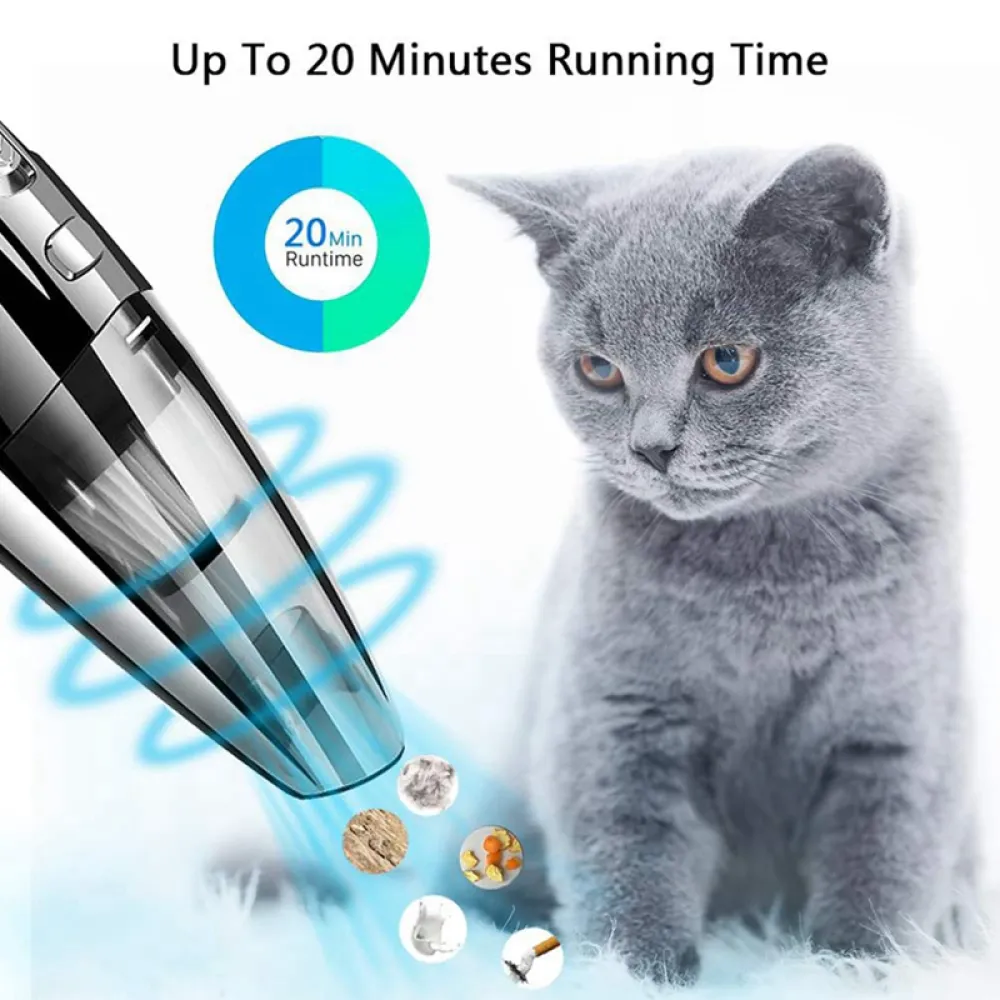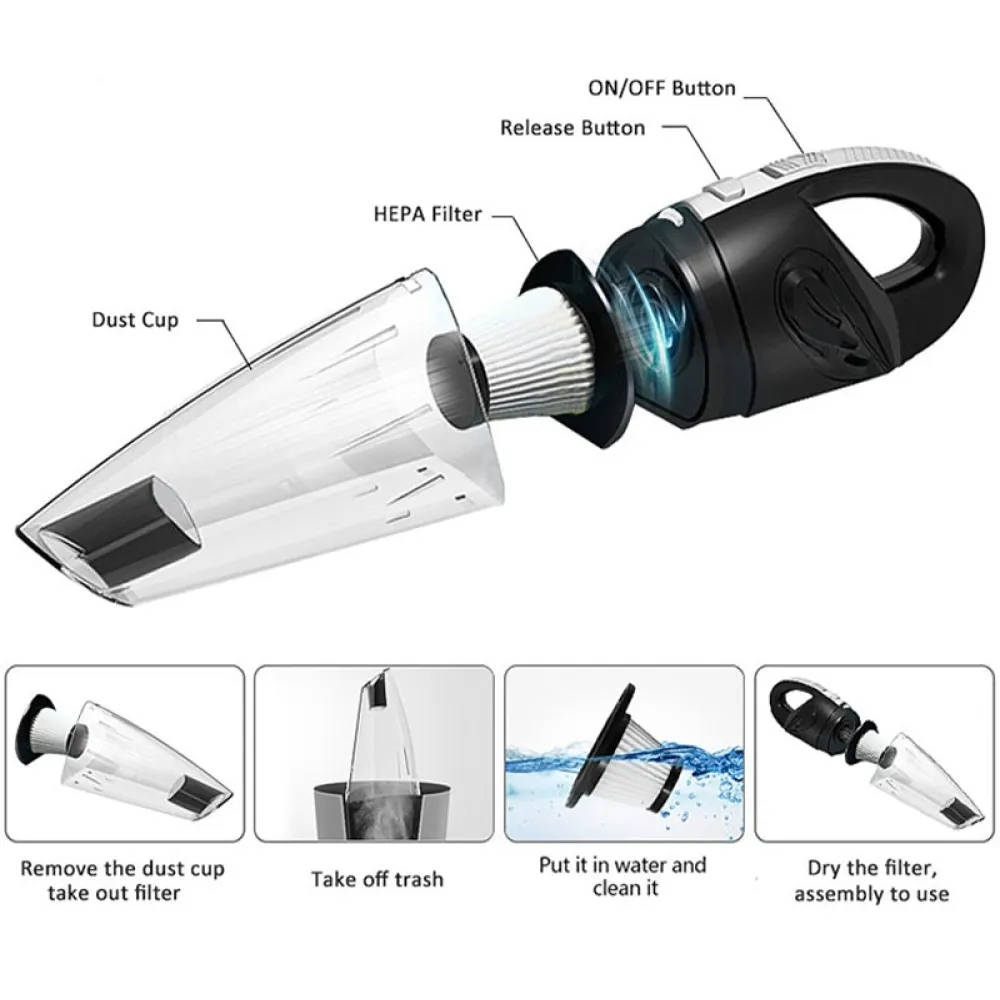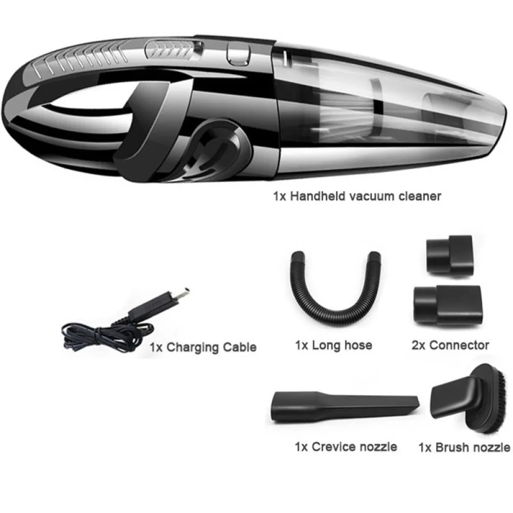 Vezeték nélküli kézi autóporszívó 120W száraz és nedves porszívózáshoz praktikus segítő az autó belső terének és az otthon gyors tisztításához. Kompakt méretének és vezeték nélküli kialakításának köszönhetően kényelmes használatot biztosít kábelek nélkül.