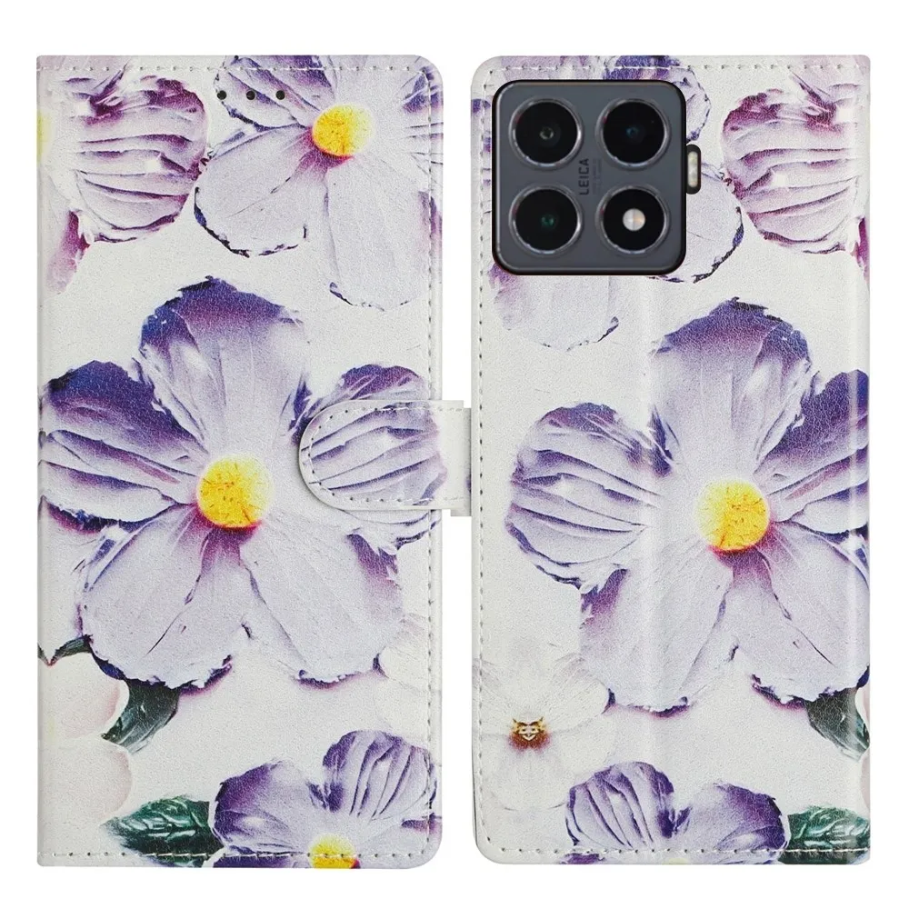 Biztonságos pénztárca tok Xiaomi 15T Pro és lila virágok számára