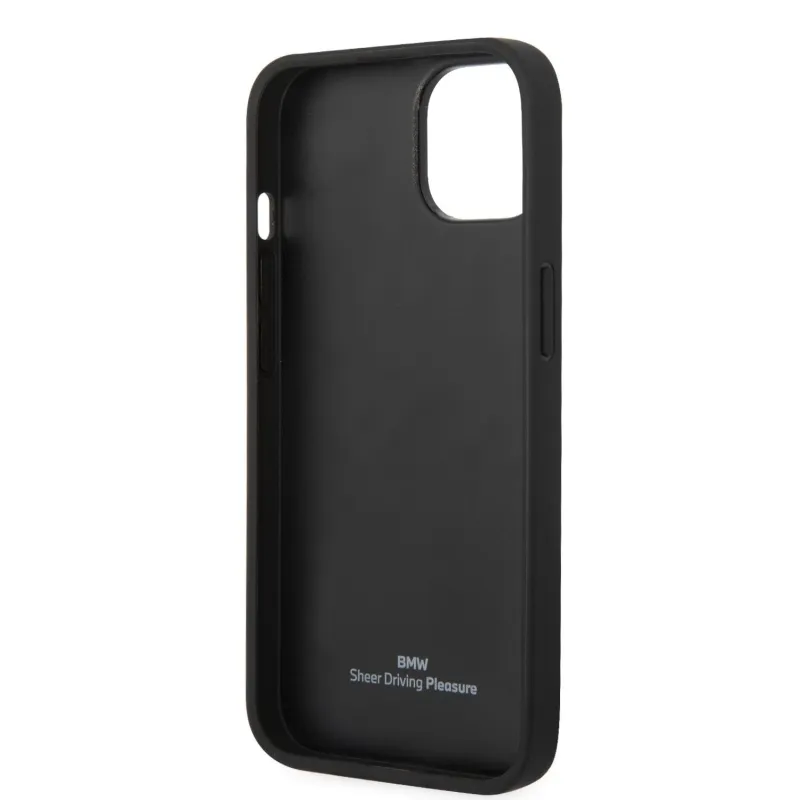 BMW Signature Leather Big Logo hátlapi borító iPhone 14 Plus készülékhez Fekete