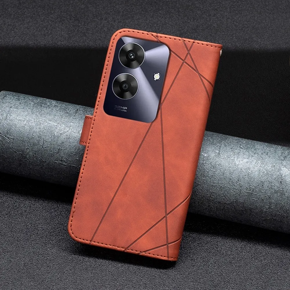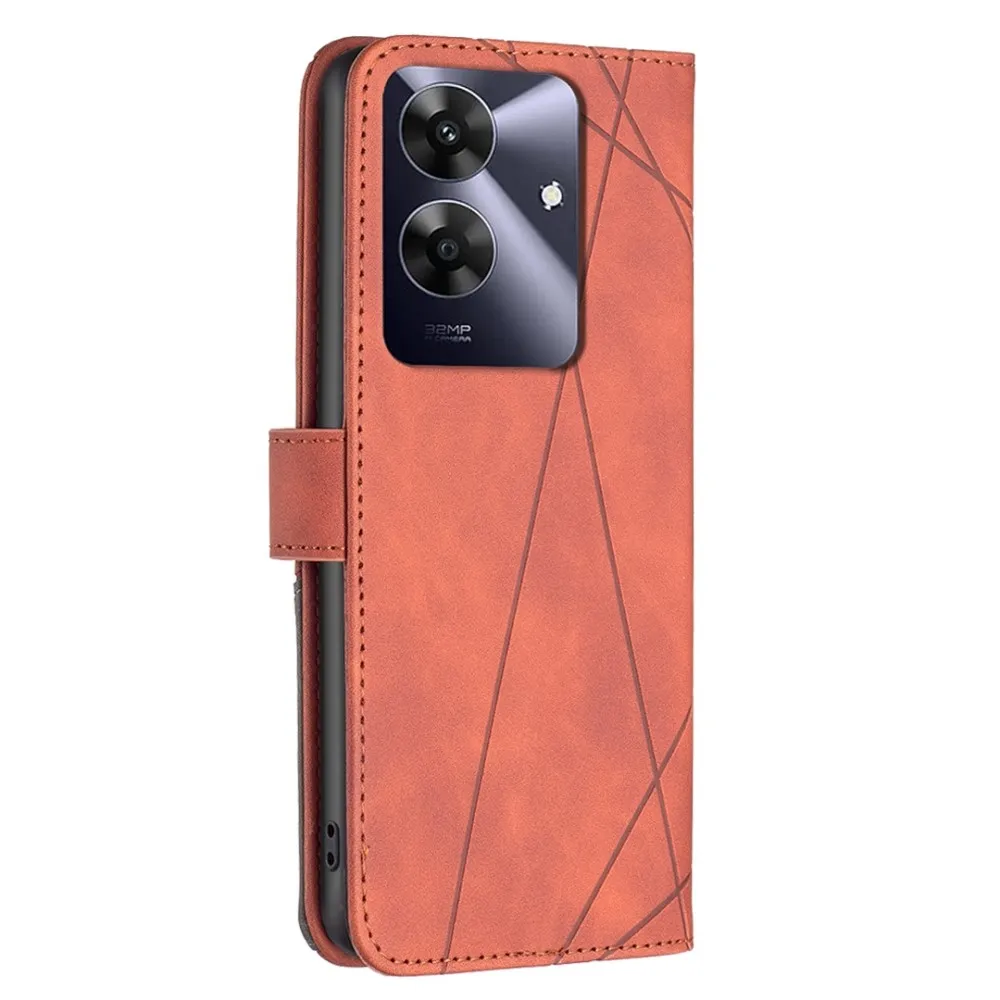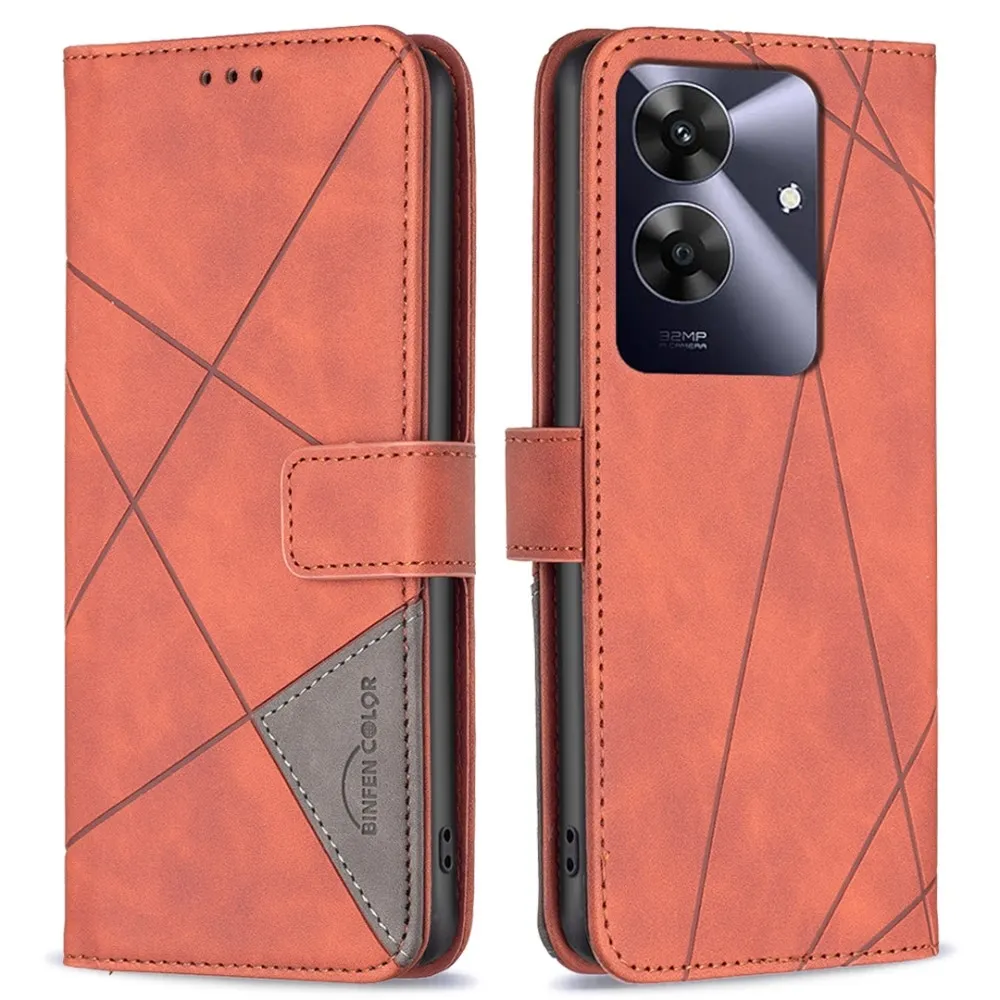 ✅Háromszög alakú tok Realme Note 60 készülékhez barna színben, prémium műbőrből + TPU rugalmas gélből készült, teljes körű védelmet nyújt elölről és hátulról