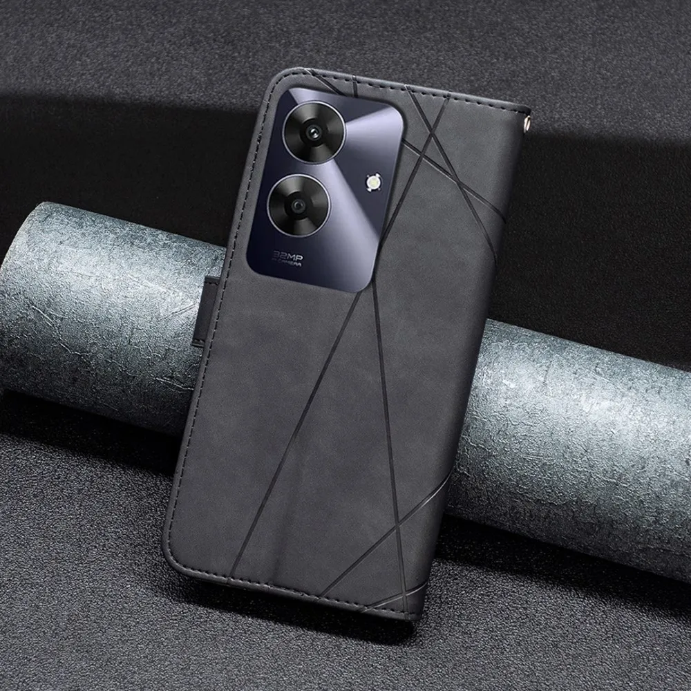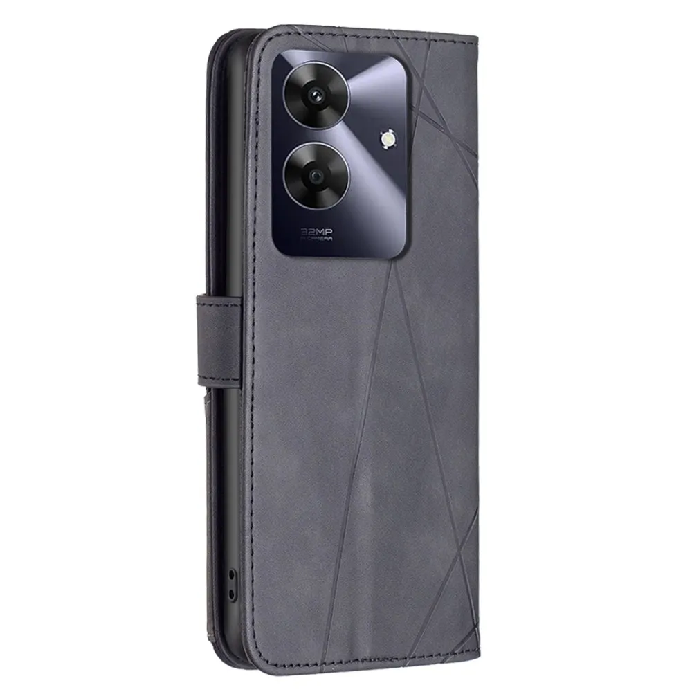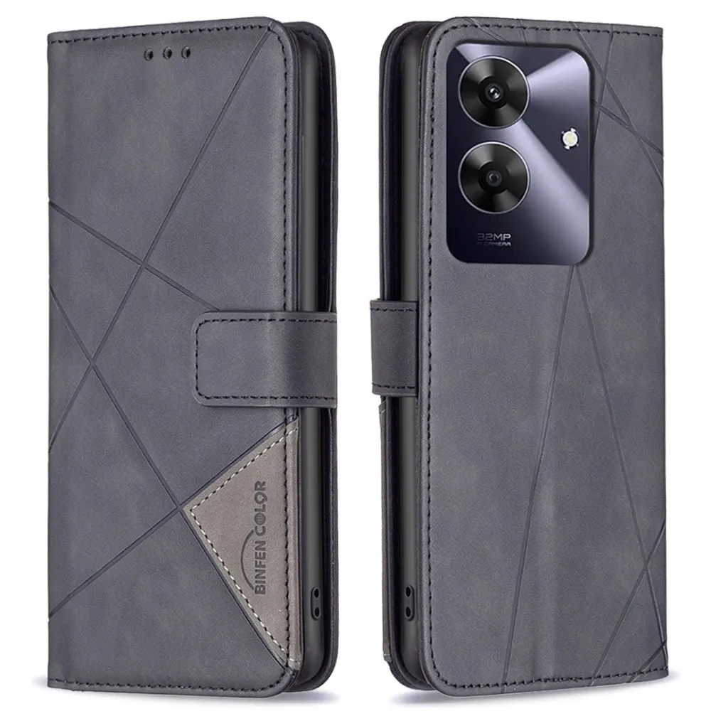✅Háromszögletű tok Realme Note 60 készülékhez, fekete színben, prémium műbőrből + TPU rugalmas gélből készült, teljes körű védelem elölről és hátulról