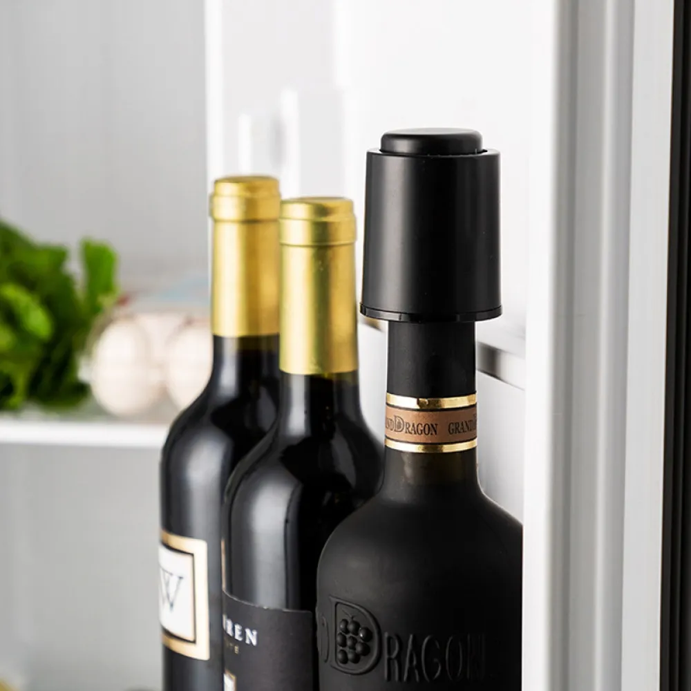 A praktikus bor, prosecco és pezsgő dugó segít az ital frissességének megőrzésében felbontás után. A tömítő kialakítás minimalizálja a levegő bejutását, így megőrzi az ízt és az aromát. A beépített dátumjelző skála lehetővé teszi a palack felbontásának napjának egyszerű megjelölését. Az elegáns fekete dizájn diszkrét, és minden otthonba vagy borhűtőbe jól illeszkedik.