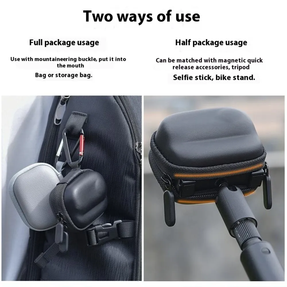 A csomag része egy praktikus karabiner, amely lehetővé teszi a tok rögzítését hátizsákhoz vagy táskához. Így a kamera mindig kéznél van szabadtéri tevékenységek, utazás vagy mindennapi használat során.