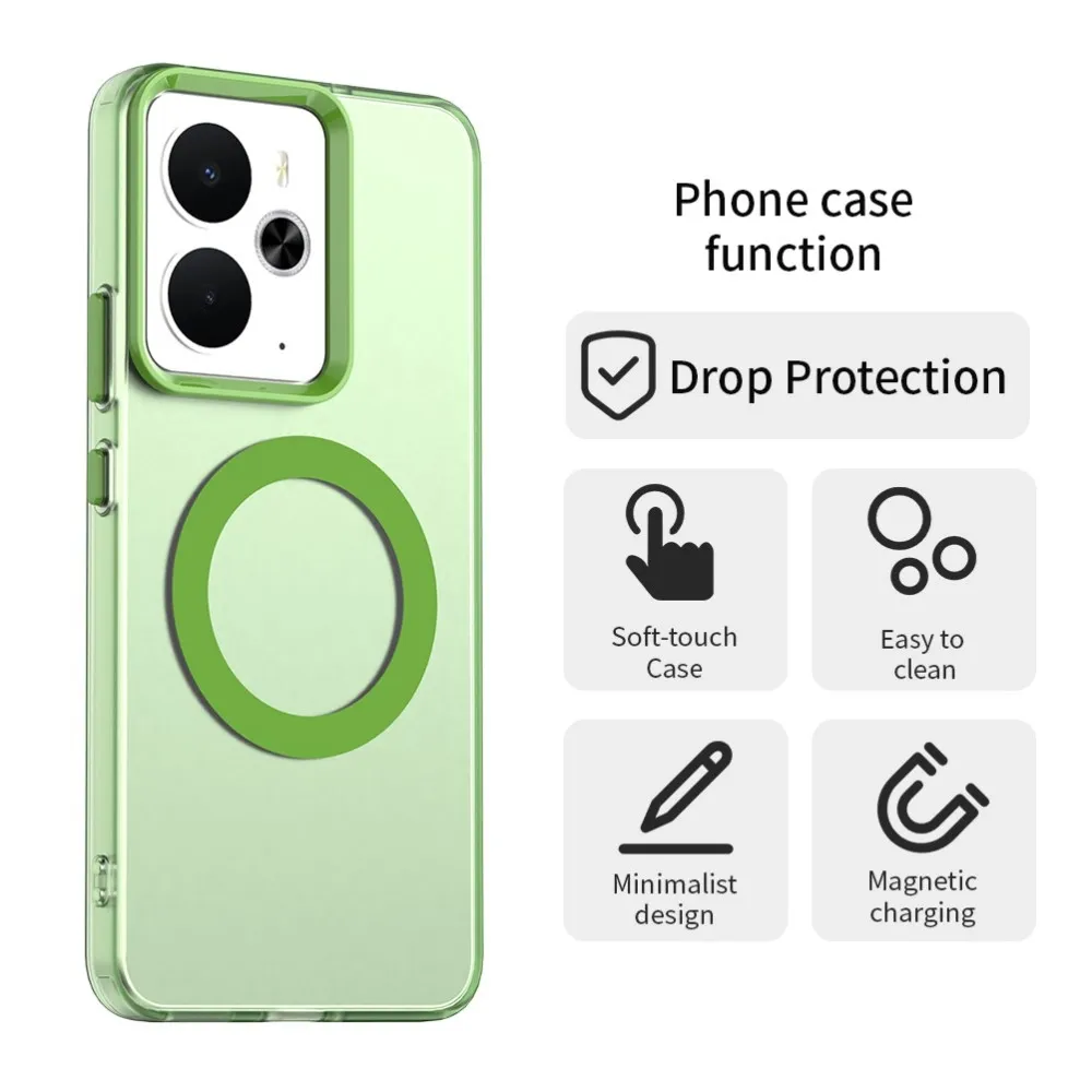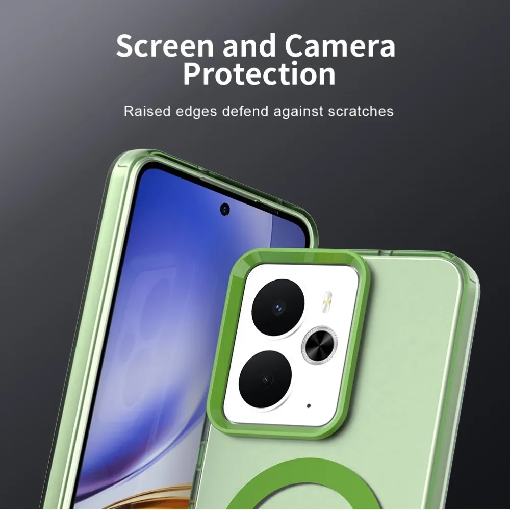 ✅【Kiváló minőségű anyag】Candy Gel tok MagSafe támogatással Realme 14 5G készülékhez zöld színben, prémium PC + TPU + PET anyagból készült, megvédi a telefont a karcolásoktól, ütésektől és egyéb mindennapi sérülésektől