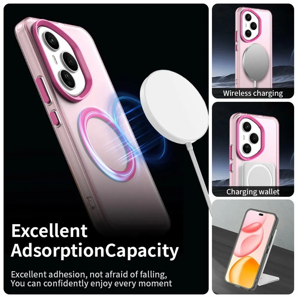 ✅【Kiváló minőségű anyag】 Candy Gel tok MagSafe támogatással Honor 400 Pro készülékhez rózsaszín színben, prémium PC + TPU + PET anyagból készült, megvédi a telefont a karcolásoktól, ütésektől és egyéb mindennapi sérülésektől.