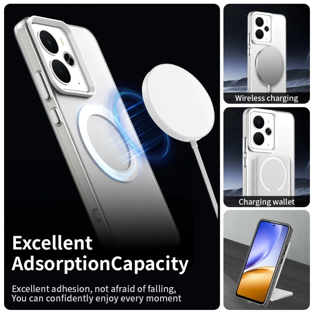 ✅【Kiváló minőségű anyag】 Candy Gel tok MagSafe támogatással Realme 14 5G készülékhez, átlátszó színben, prémium PC + TPU + PET anyagból készült, megvédi a telefont a karcolásoktól, ütésektől és egyéb mindennapi károktól.