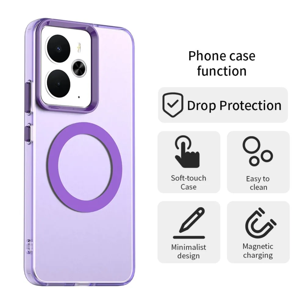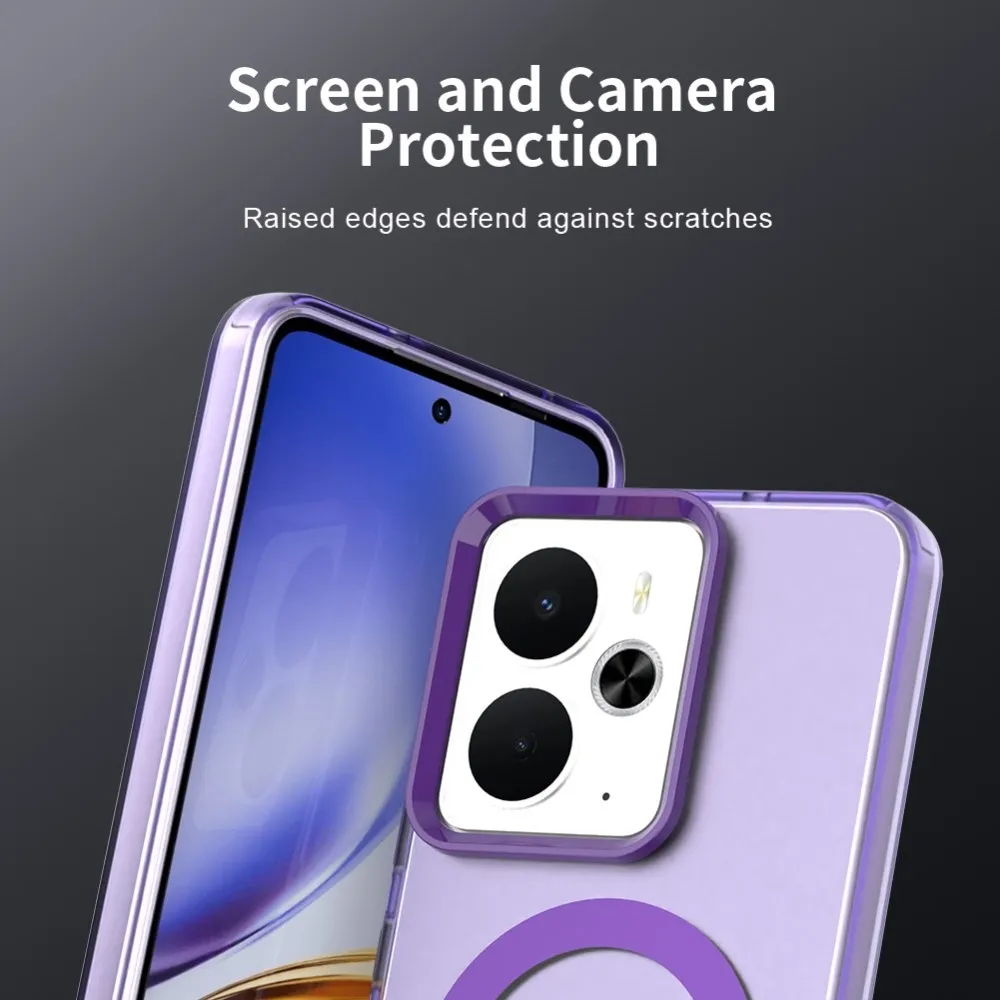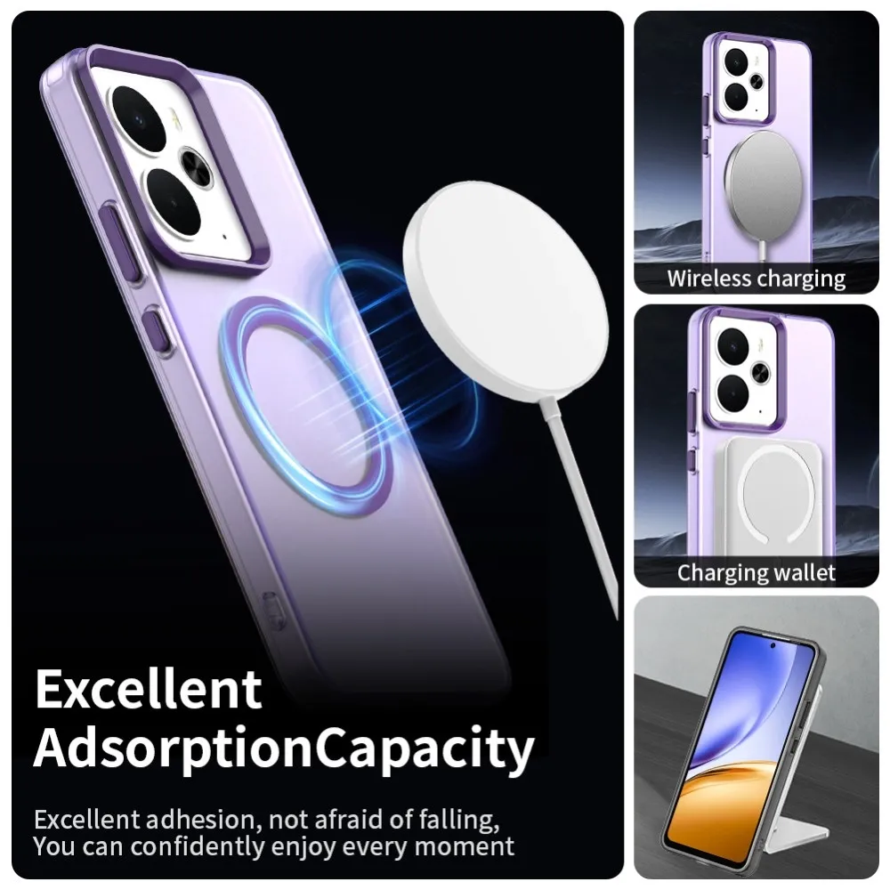 ✅【Kiváló minőségű anyag】 Candy Gel tok MagSafe támogatással Realme 14 5G készülékhez lila színben, prémium PC + TPU + PET anyagból készült, megvédi a telefont a karcolásoktól, ütésektől és egyéb mindennapi károktól.