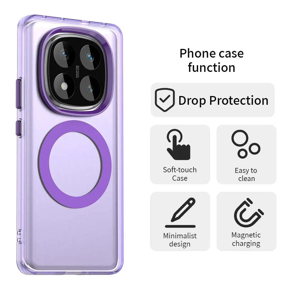 ✅【Kiváló minőségű anyag】 Candy Gel tok MagSafe támogatással Xiaomi Redmi Note 14 Pro készülékhez lila színben, prémium PC + TPU + PET anyagból készült, megvédi a telefont a karcolásoktól, ütésektől és egyéb mindennapi károktól.