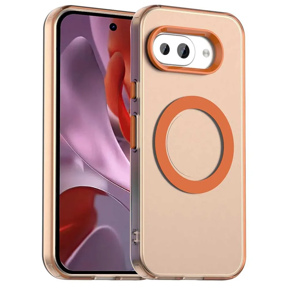 ✅【Kiváló minőségű anyag】 Candy Gel tok MagSafe támogatással Google Pixel 9a készülékhez narancssárga színben, prémium PC + TPU + PET anyagból készült, megvédi a telefont a karcolásoktól, ütésektől és egyéb mindennapi károktól.