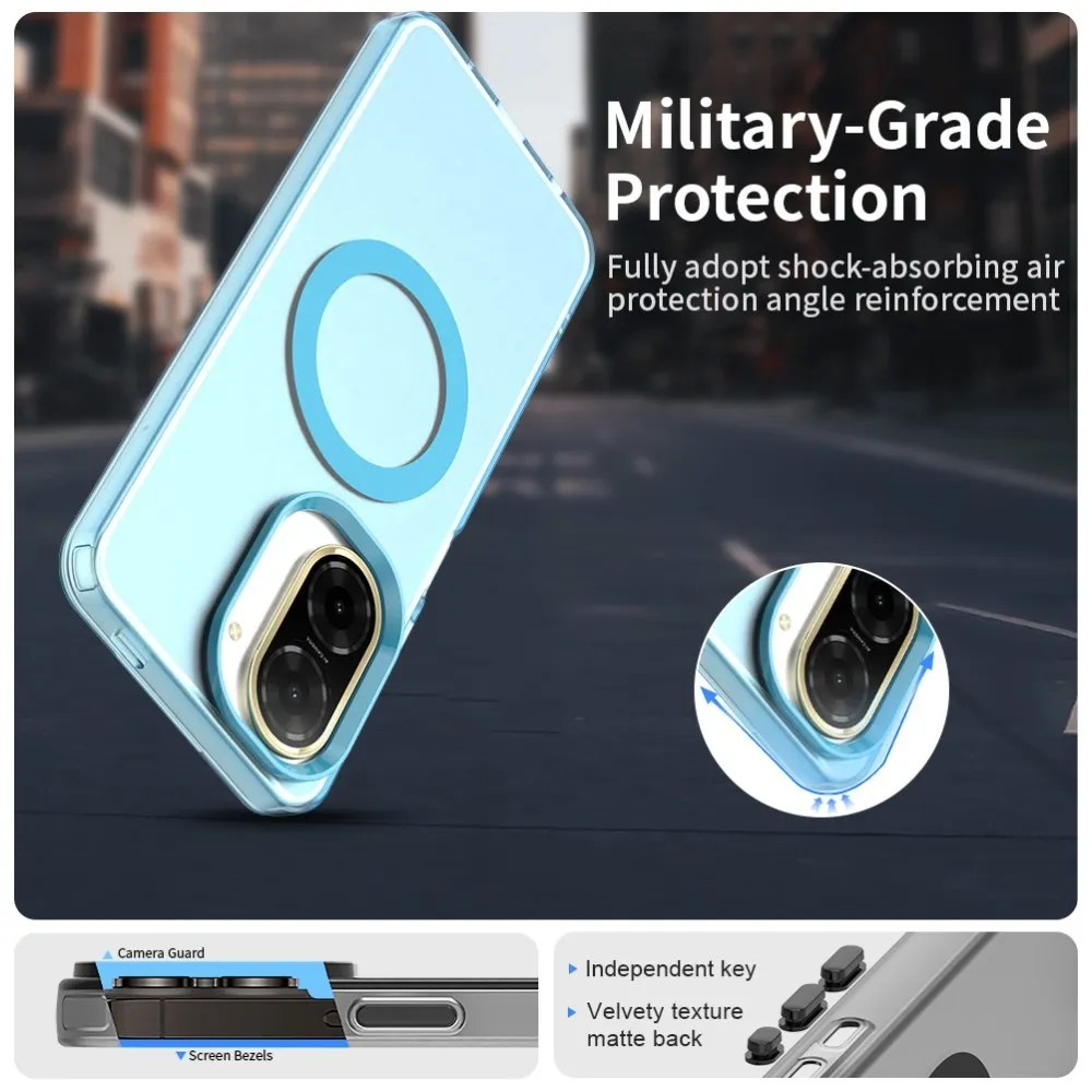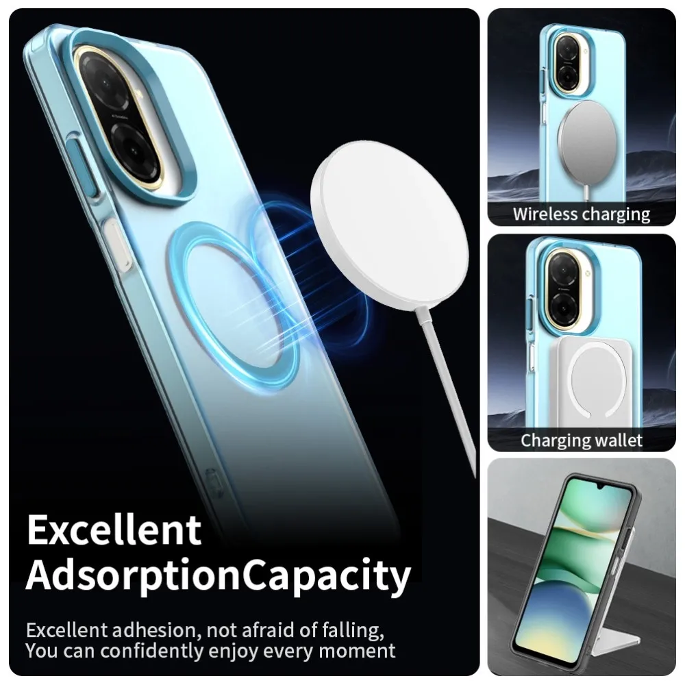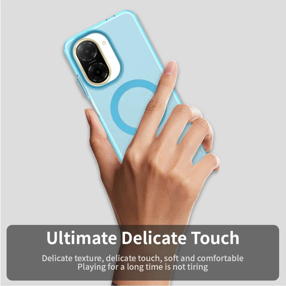 ✅【Kiváló minőségű anyag】 Candy Gel tok MagSafe támogatással Xiaomi Redmi A5 (171.7x77.8x8.3mm) készülékhez kék színben, prémium PC + TPU + PET anyagból készült, megvédi a telefont a karcolásoktól, ütésektől és egyéb mindennapi károktól.