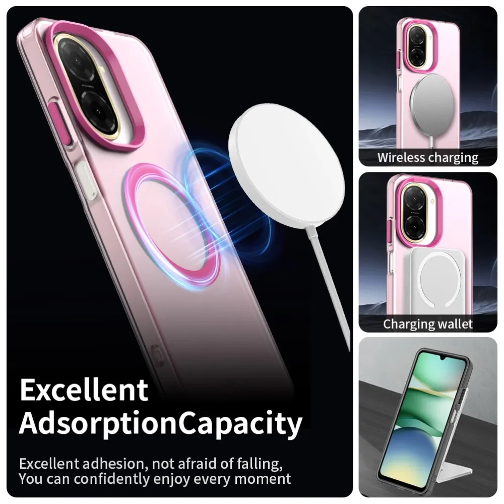 ✅【Kiváló minőségű anyag】 Candy Gel tok MagSafe támogatással Xiaomi Redmi A5 (171.7x77.8x8.3mm) készülékhez rózsaszín színben, prémium PC + TPU + PET anyagból készült, megvédi a telefont a karcolásoktól, ütésektől és egyéb mindennapi sérülésektől.