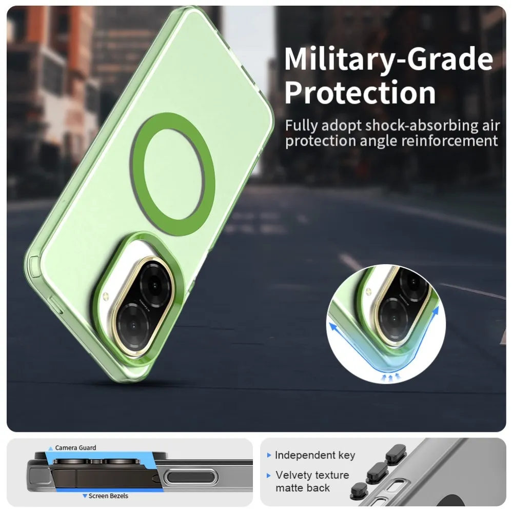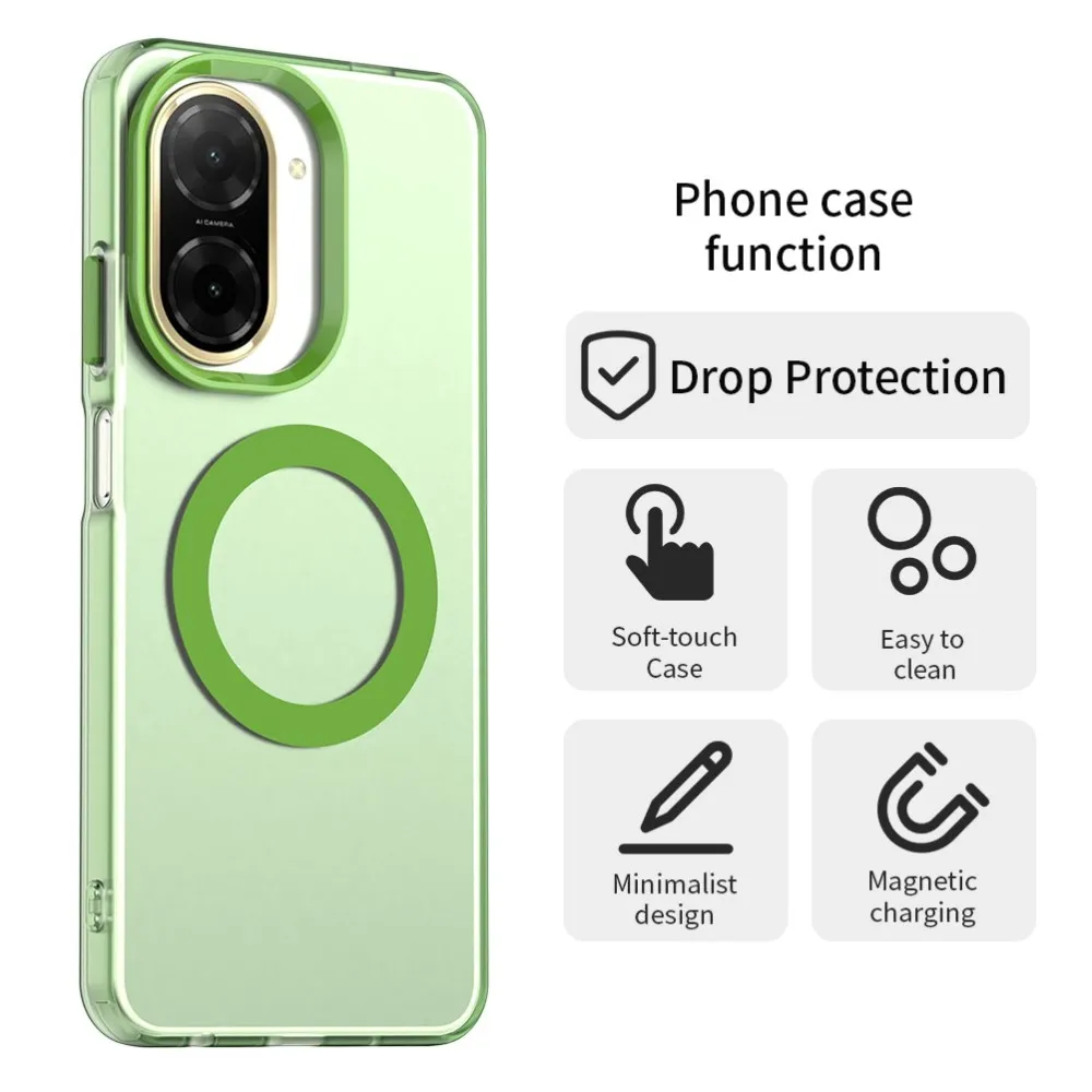 ✅【Kiváló minőségű anyag】Candy Gel tok MagSafe támogatással Xiaomi Redmi A5 (171.7x77.8x8.3mm) készülékhez zöld színben, prémium PC + TPU + PET anyagból készült, megvédi a telefont a karcolásoktól, ütésektől és egyéb mindennapi sérülésektől