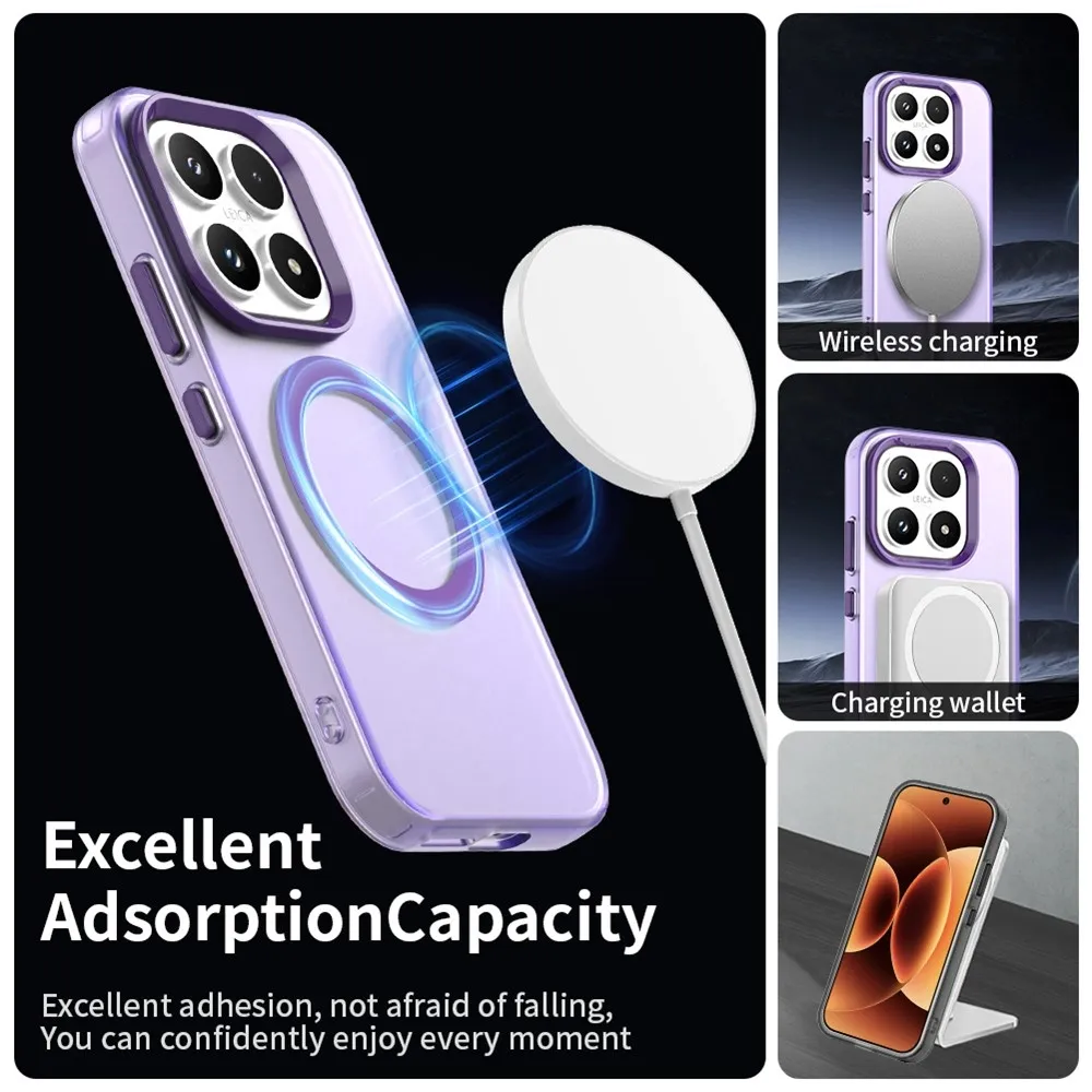 ✅【Kiváló minőségű anyag】 Candy Gel tok MagSafe támogatással Xiaomi 17 készülékhez lila színben, prémium PC + TPU + PET anyagból készült, megvédi a telefont a karcolásoktól, ütésektől és egyéb mindennapi károktól.