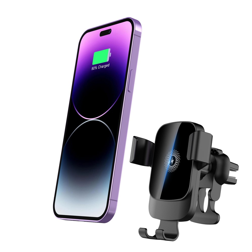CF96 vezeték nélküli autós töltő szellőzőrácsba rögzíthető tartóval 15 W praktikus megoldás a mobiltelefon kényelmes töltésére vezetés közben. A QI vezeték nélküli töltésnek és az intelligens gravitációs mechanizmusnak köszönhetően a telefon behelyezés után automatikusan rögzül a tartóban, és kábel csatlakoztatása nélkül megkezdődik a töltés.