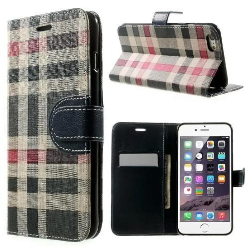 Check PU bőr könyvtáska iPhone 6s Plus és 6 Plus készülékhez - sötétkék színben