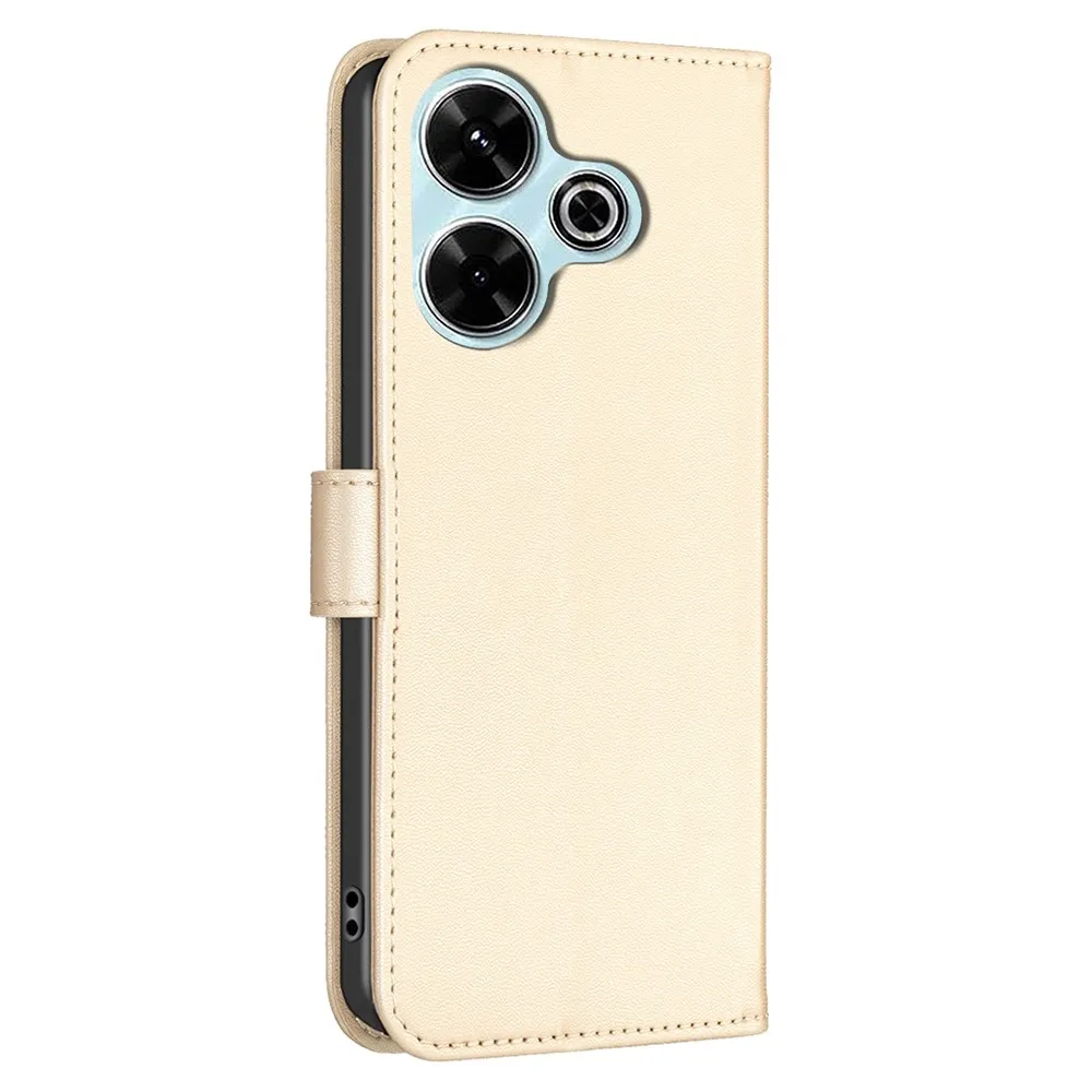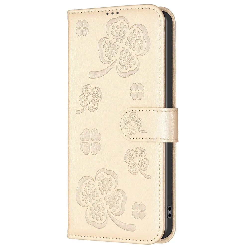 ✅【Tartós ütéscsillapítás】A Clover Book tok Xiaomi Redmi 13 4G/Poco M6 4G-hez - Arany színű, sima műbőrből és puha TPU anyagból készült, kiváló ütéscsillapítást és ütésvédelmet biztosítva, megvédve telefonját a mindennapi ütődésektől.