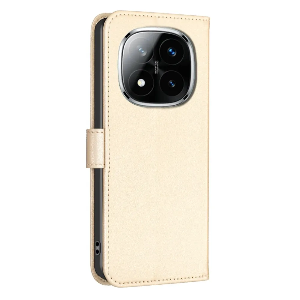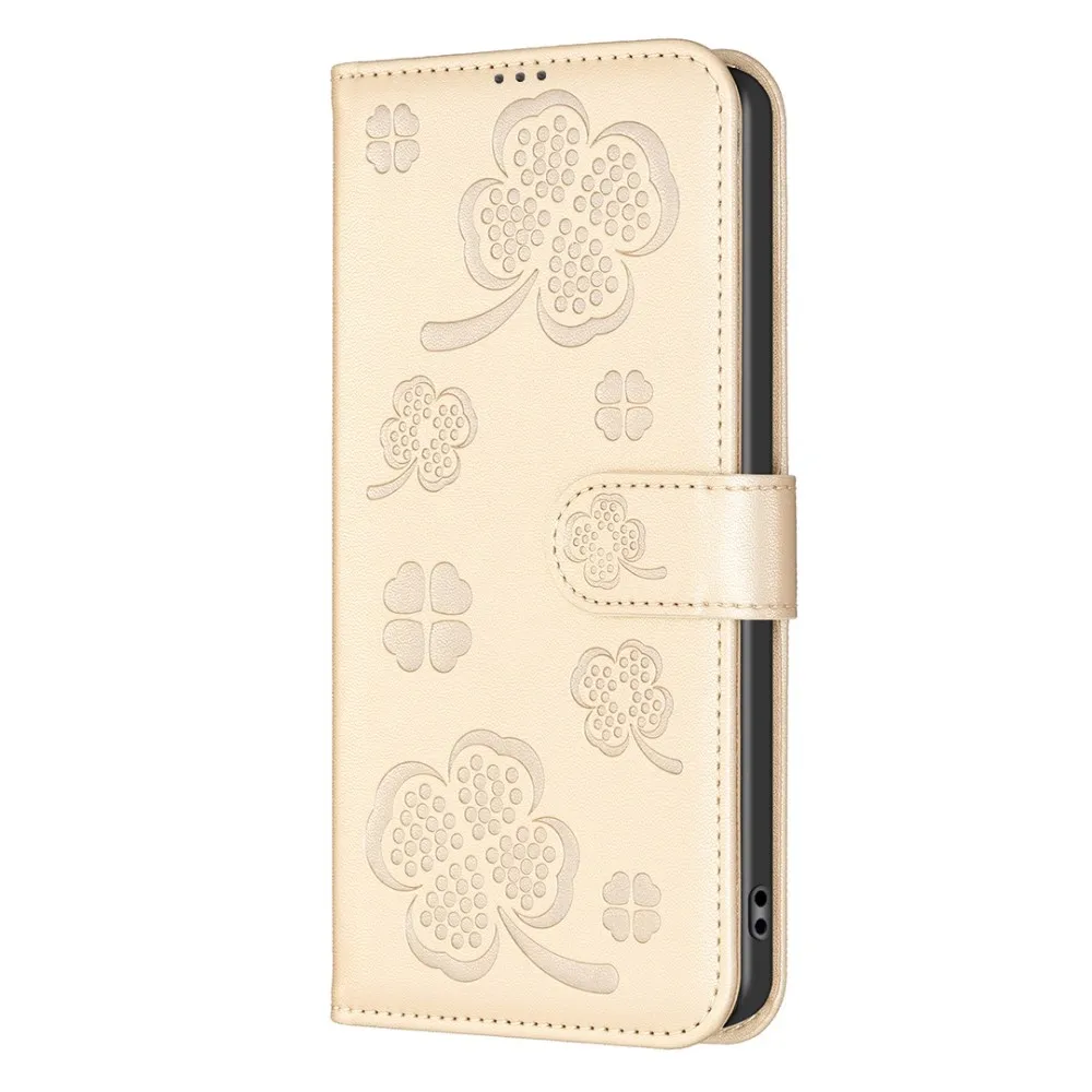 ✅【Tartós ütéscsillapítás】A Clover Book tok Xiaomi Redmi Note 14 Pro-hez - Arany színű, sima műbőrből és puha TPU anyagból készült, kiváló ütéscsillapítást és ütésvédelmet biztosítva, megvédve telefonját a mindennapi ütődésektől.