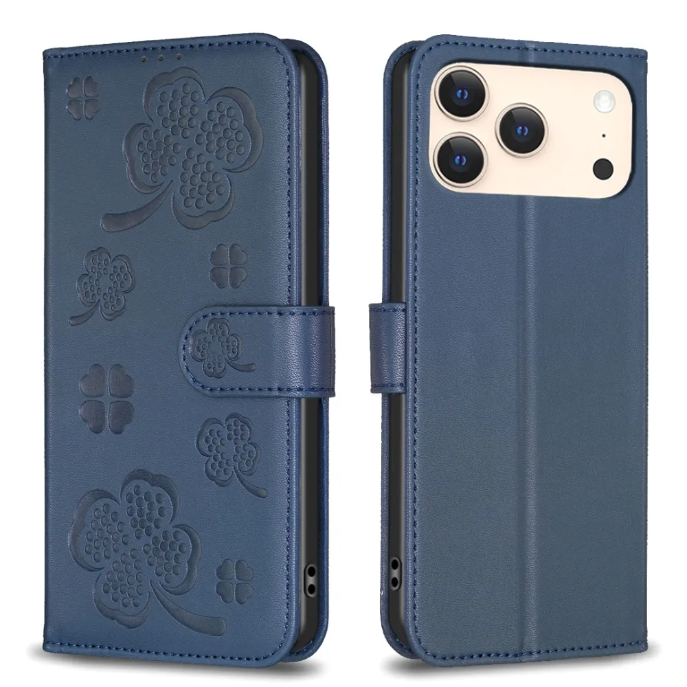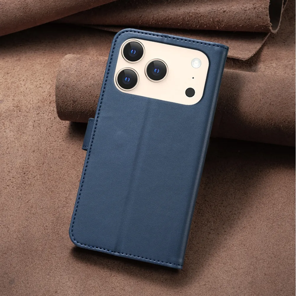 ✅【Tartós ütéscsillapítás】Clover Book tok iPhone 17 Pro Max-hez - Kék, sima műbőrből és puha TPU anyagból készült, kiváló ütéscsillapítást és ütésvédelmet biztosítva, megvédve telefonját a mindennapi ütődésektől