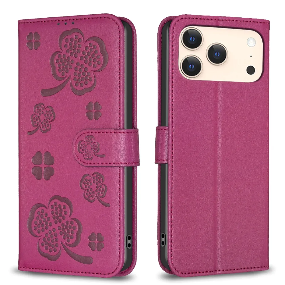 ✅【Tartós ütéscsillapítás】Clover Book tok iPhone 17 Pro Max-hez - rózsaszín sima műbőrből és puha TPU anyagból készült, kiváló ütéscsillapítást és ütésvédelmet biztosítva, megvédve telefonját a mindennapi ütődésektől
