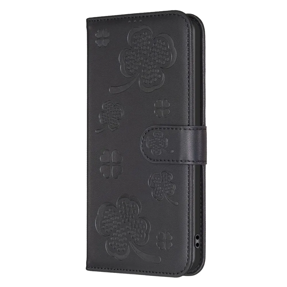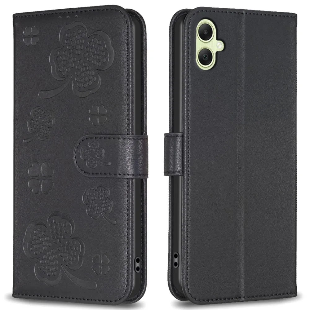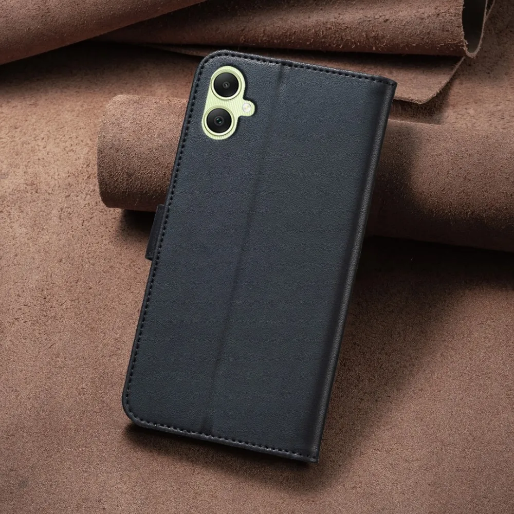 ✅【Tartós ütéscsillapítás】Clover Book tok Samsung Galaxy A06 4G-hez - Fekete, sima műbőrből és puha TPU anyagból készült, kiváló ütéscsillapítást és ütésvédelmet biztosítva, megvédve telefonját a mindennapi ütődésektől