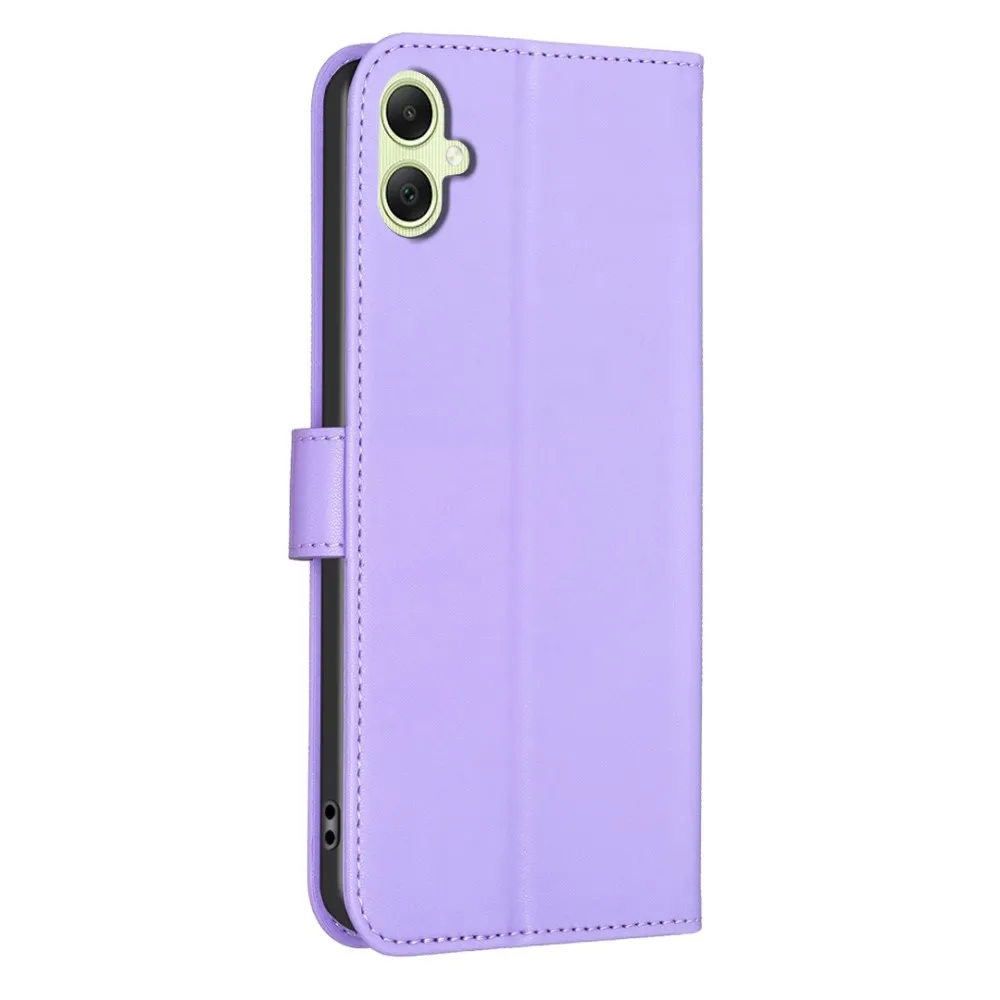 ✅【Tartós ütéscsillapítás】Clover Book tok Samsung Galaxy A06 4G-hez - Lila sima műbőrből és puha TPU anyagból készült, kiváló ütéscsillapítást és ütésvédelmet biztosítva, megvédve telefonját a mindennapi ütődésektől