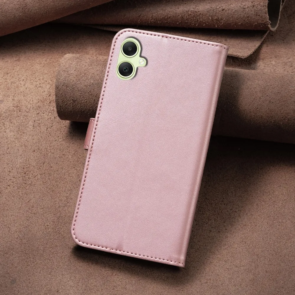 ✅【Tartós ütéscsillapítás】Clover Book tok Samsung Galaxy A06 4G-hez - Rózsaszínarany sima műbőrből és puha TPU anyagból készült, kiváló ütéscsillapítást és ütésvédelmet biztosítva, megvédve telefonját a mindennapi ütődésektől