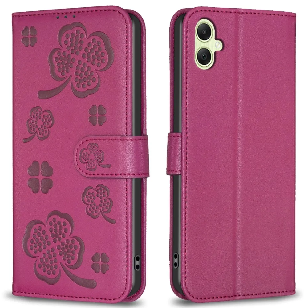 ✅【Tartós ütéscsillapítás】Clover Book tok Samsung Galaxy A06 4G-hez - rózsaszín sima műbőrből és puha TPU anyagból készült, kiváló ütéscsillapítást és ütésvédelmet biztosítva, megvédve telefonját a mindennapi ütődésektől