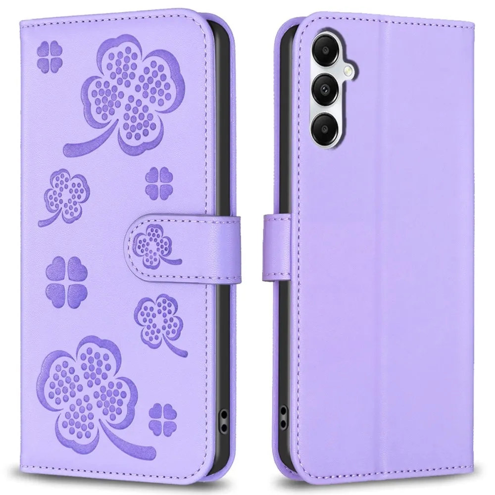✅【Tartós ütéscsillapítás】Clover Book tok Samsung Galaxy A56 5G-hez - Lila sima műbőrből és puha TPU anyagból készült, kiváló ütéscsillapítást és ütésvédelmet biztosítva, megvédve telefonját a mindennapi ütődésektől