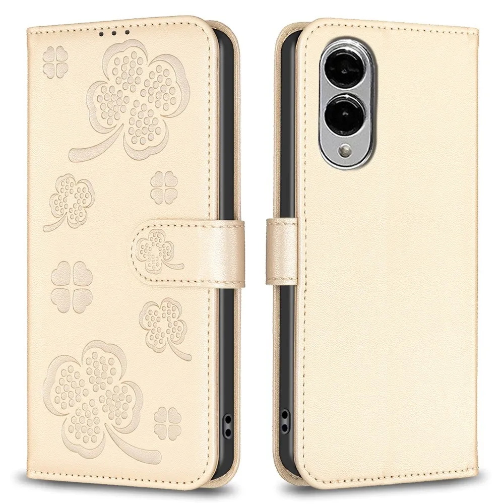 ✅【Tartós ütéscsillapítás】A Clover Book tokSamsung Galaxy S25 Edge-hez - Arany színű, sima műbőrből és puha TPU anyagból készült, kiváló ütéscsillapítást és ütésvédelmet biztosítva, megvédve telefonját a mindennapi ütődésektől.