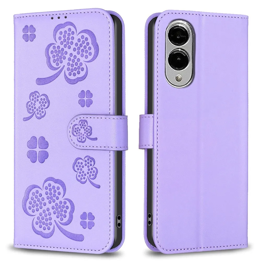 ✅【Tartós ütéscsillapítás】Clover Book tokSamsung Galaxy S25 Edge-hez - Lila sima műbőrből és puha TPU anyagból készült, kiváló ütéscsillapítást és ütésvédelmet biztosítva, megvédve telefonját a mindennapi ütődésektől