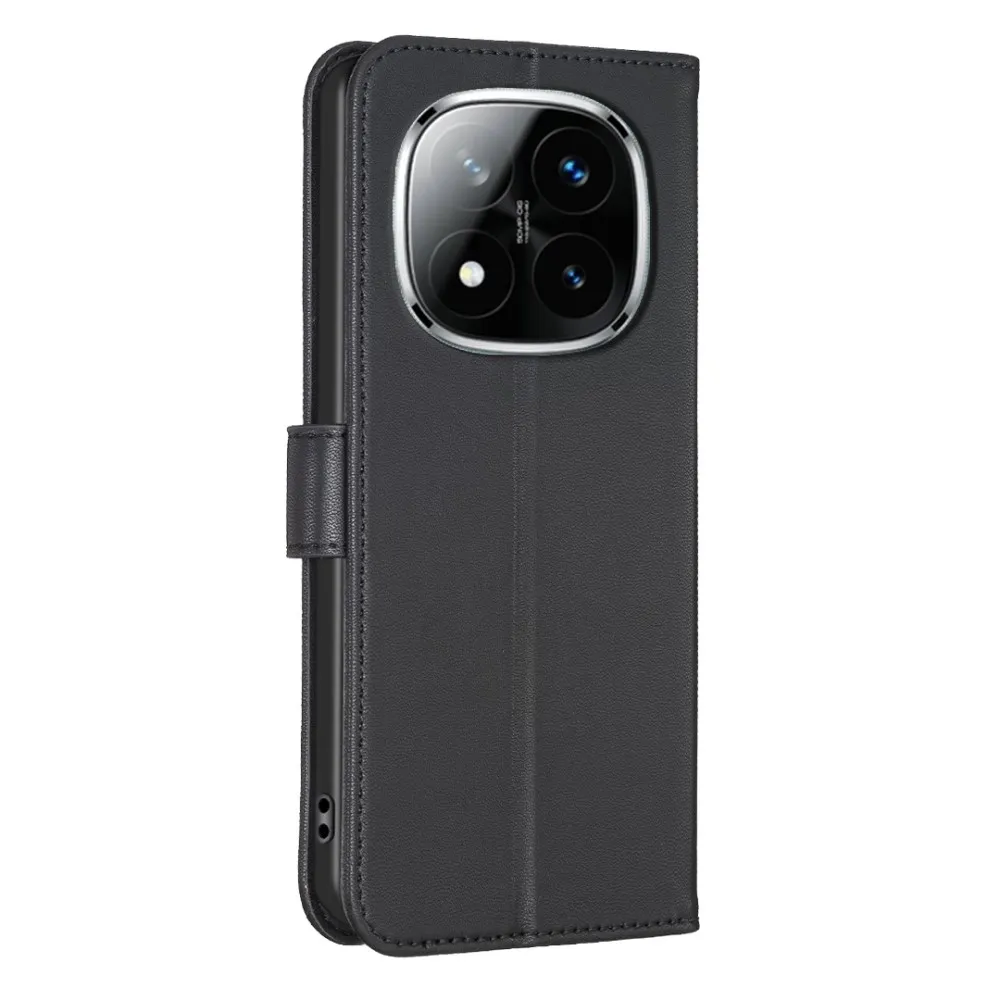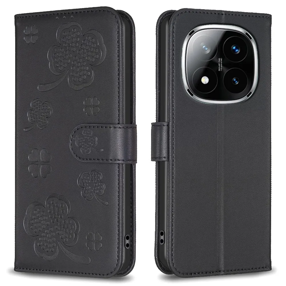 ✅【Tartós ütéscsillapítás】Clover Book tok Xiaomi Redmi Note 14 Pro-hez - Fekete, sima műbőrből és puha TPU anyagból készült, kiváló ütéscsillapítást és ütésvédelmet biztosítva, megvédve telefonját a mindennapi ütődésektől