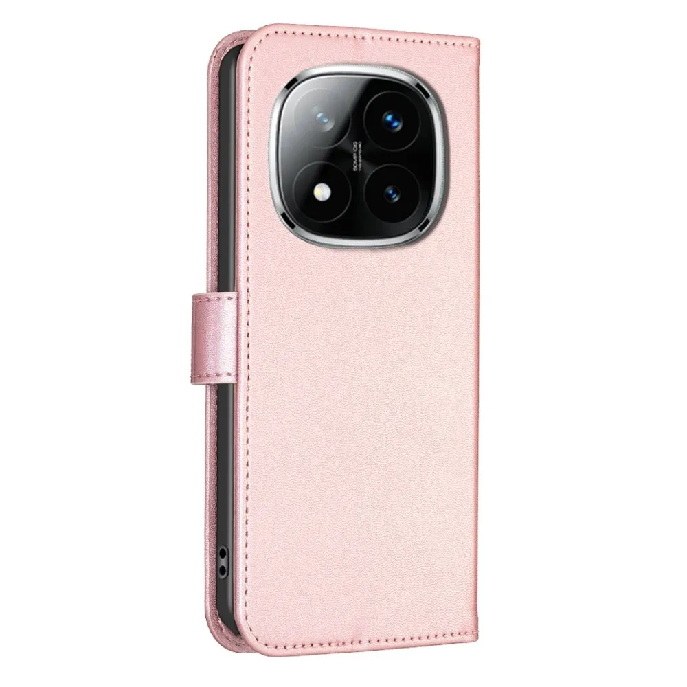 ✅【Tartós ütéscsillapítás】A Clover Book tok Xiaomi Redmi Note 14 Pro-hez - Pink sima műbőrből és puha TPU anyagból készült, kiváló ütéscsillapítást és ütésvédelmet biztosítva, megvédve telefonját a mindennapi ütődésektől.