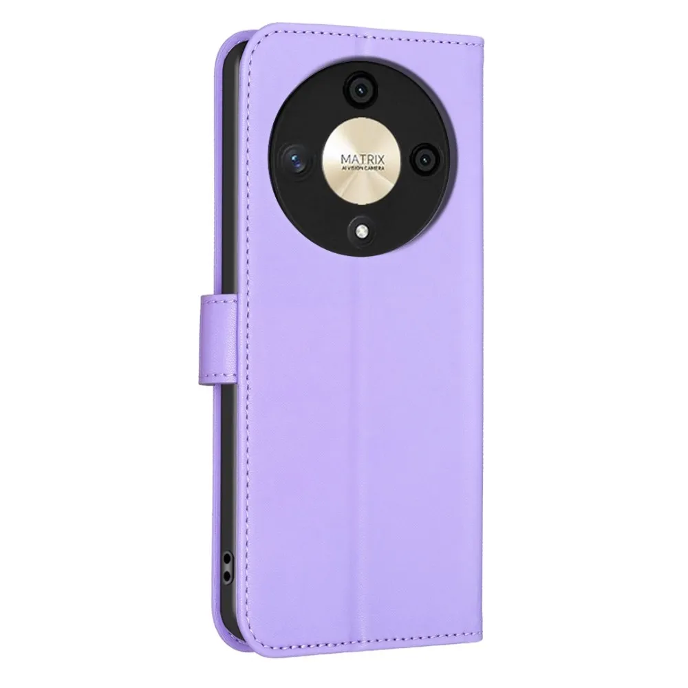 ✅【Tartós ütéscsillapítás】Clover Book tok Honor Magic 6 Lite 5G-hez - Lila sima műbőrből és puha TPU anyagból készült, kiváló ütéscsillapítást és ütésvédelmet biztosítva, megvédve telefonját a mindennapi ütődésektől