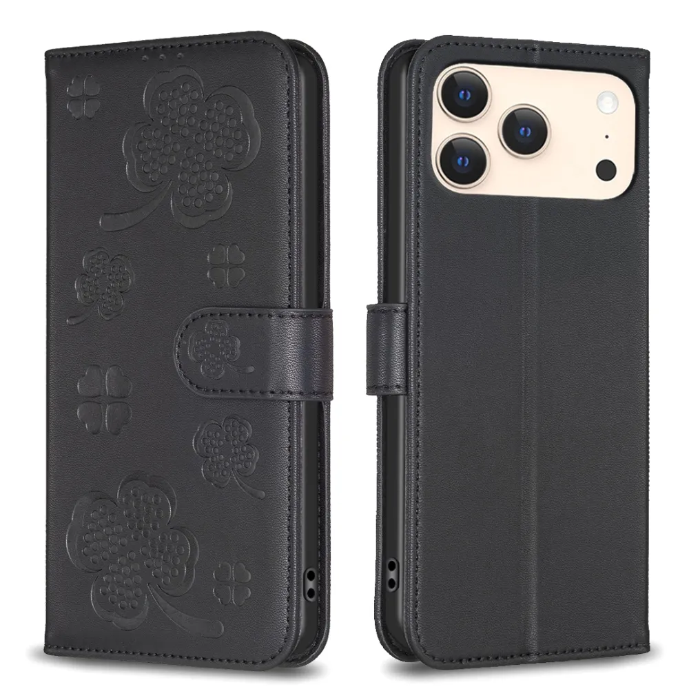 ✅【Tartós ütéscsillapítás】Clover Book tok iPhone 17 Pro Max-hez - Fekete, sima műbőrből és puha TPU anyagból készült, kiváló ütéscsillapítást és ütésvédelmet biztosítva, megvédve telefonját a mindennapi ütődésektől