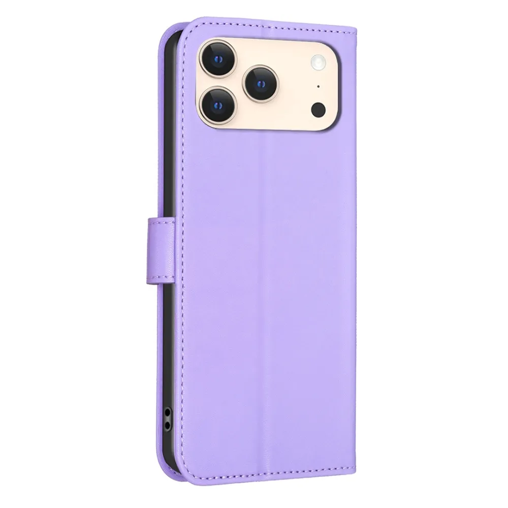✅【Tartós ütéscsillapítás】Clover Book tok iPhone 17 Pro Max-hez - Lila sima műbőrből és puha TPU anyagból készült, kiváló ütéscsillapítást és ütésvédelmet biztosítva, megvédve telefonját a mindennapi ütődésektől