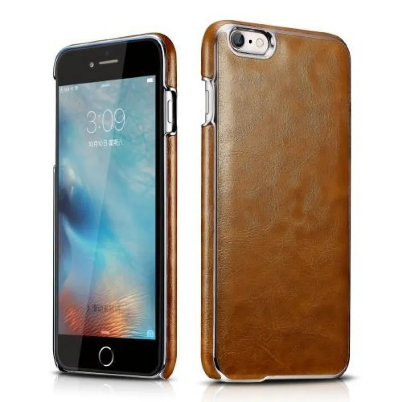 Coty műanyag tok PU bőr hátlappal iPhone 6 Plus és 6s Plus készülékhez - világosbarna színben