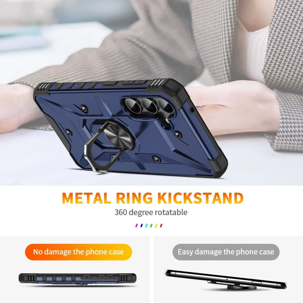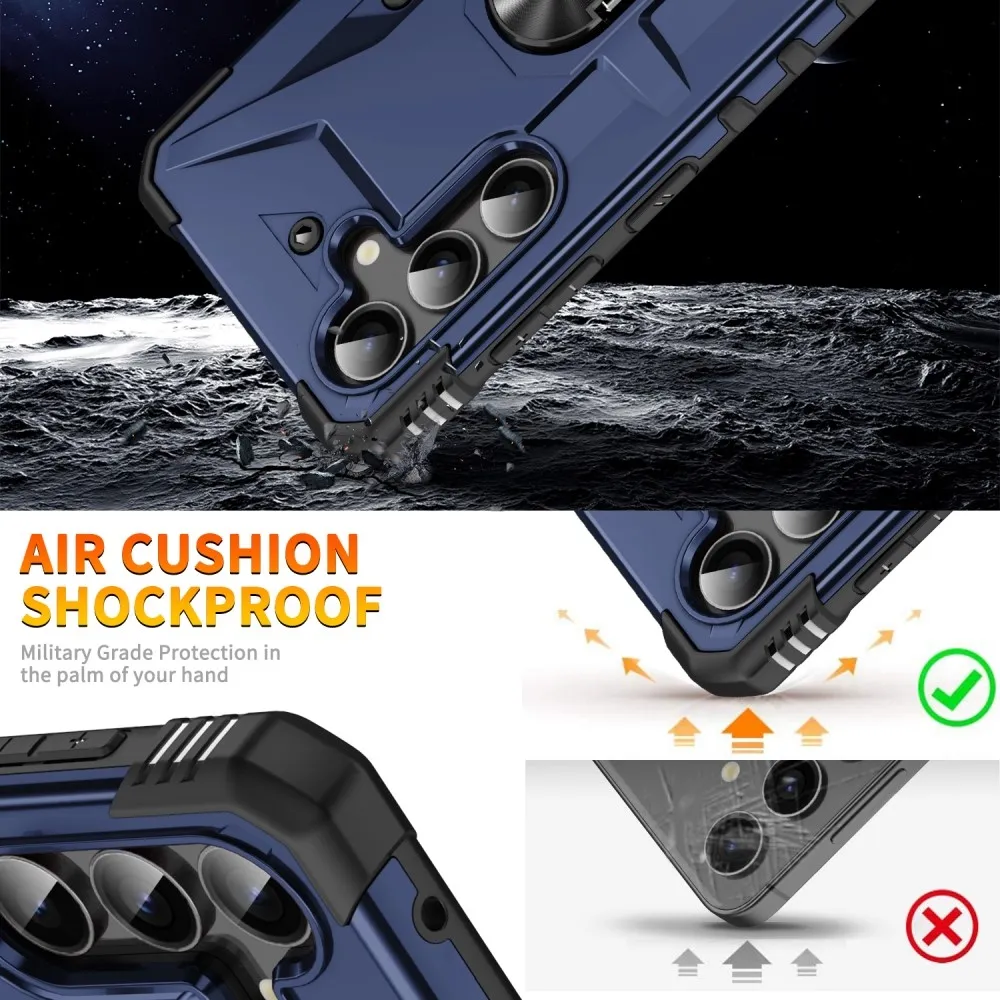 ✅【Prémium anyag】A Samsung Galaxy A26 5G sötétkék színű esésálló tokja PC + TPU anyagokból készült, a puhaság és a keménység kombinációjával, tartós és erős