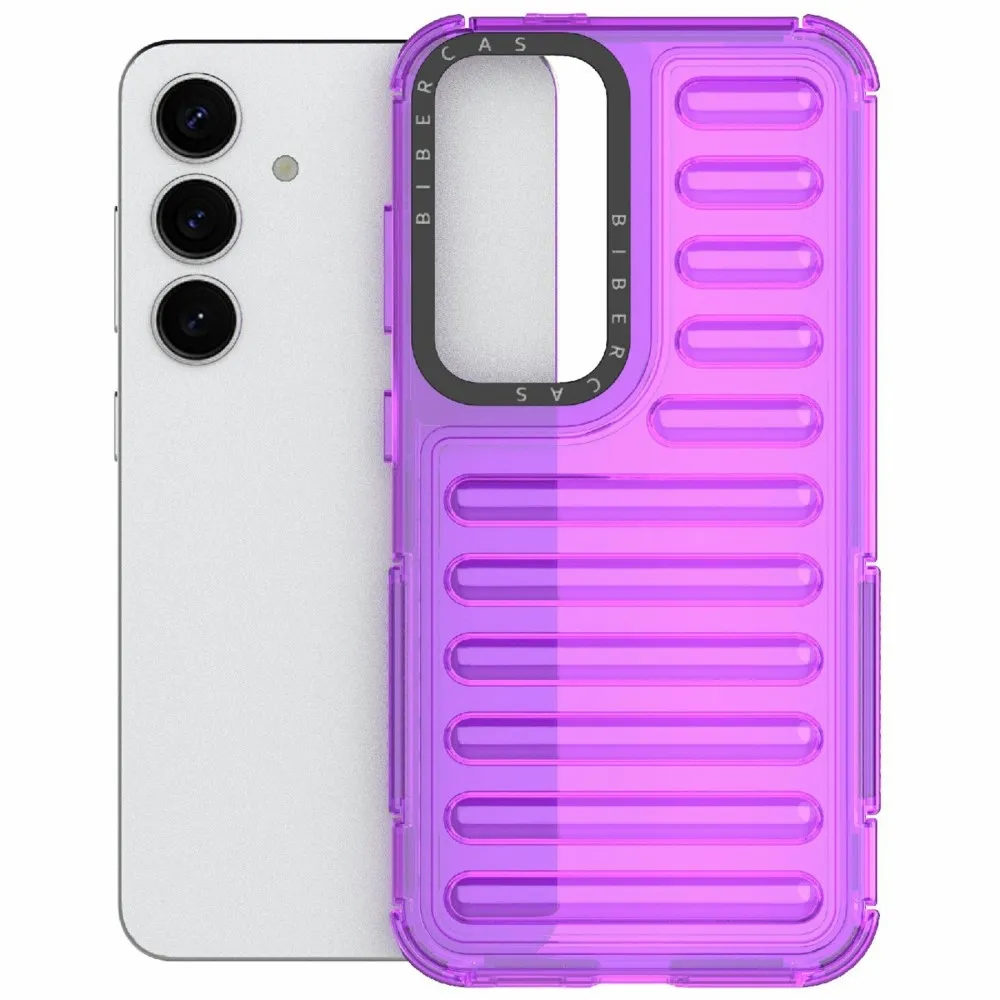 Csíkos tartós borító Samsung Galaxy S25 készülékhez - lila