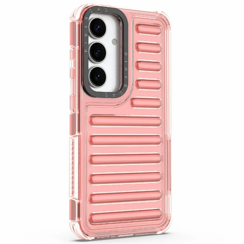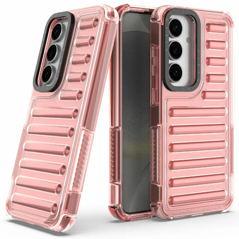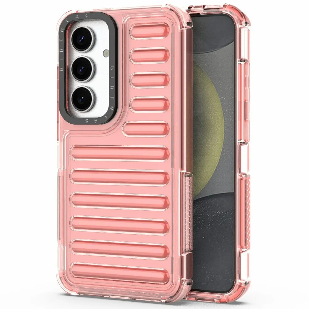 Csíkos tartós borító Samsung Galaxy S25 készülékhez - sötét rózsaszín