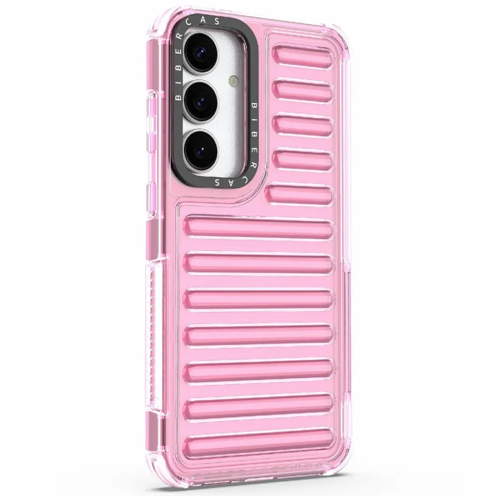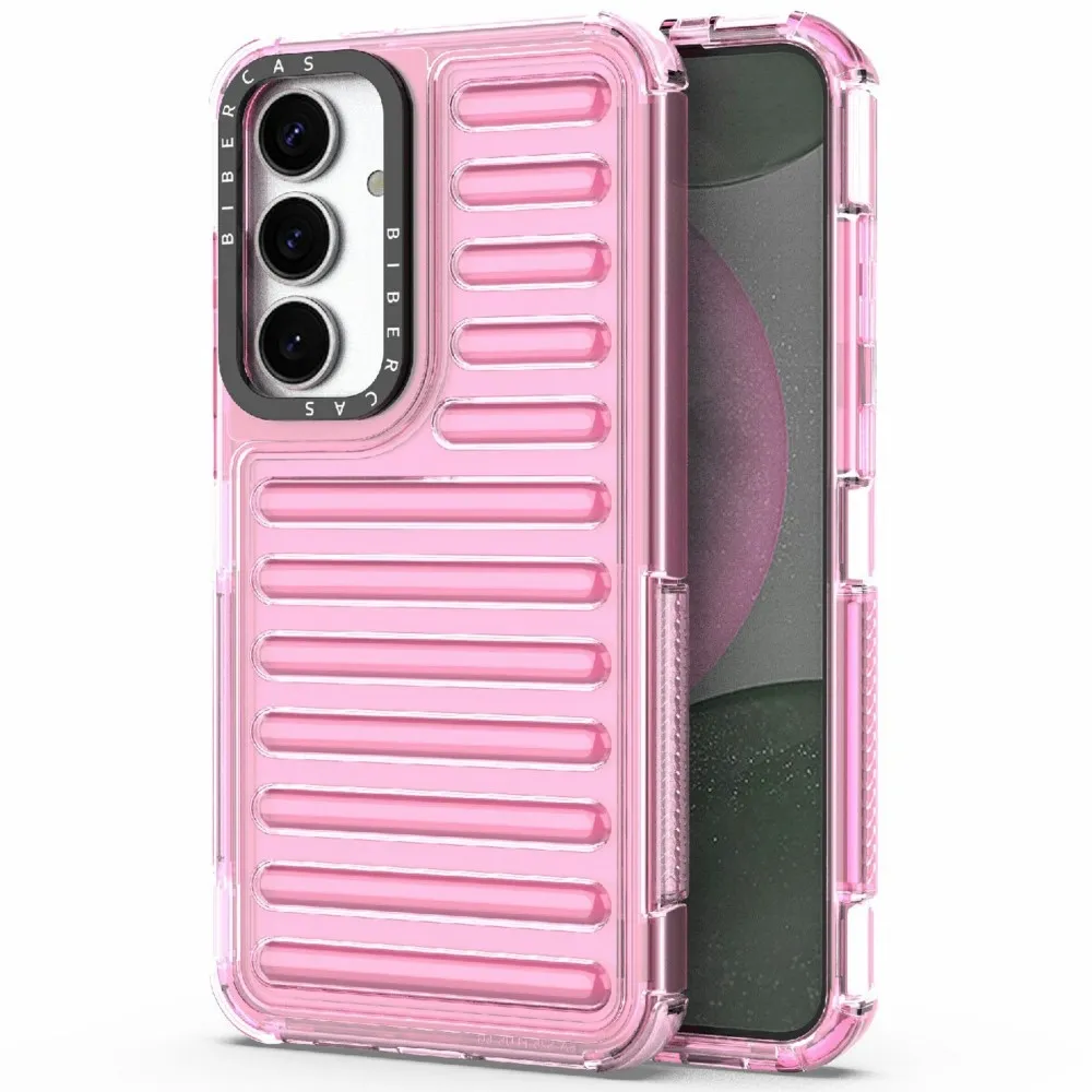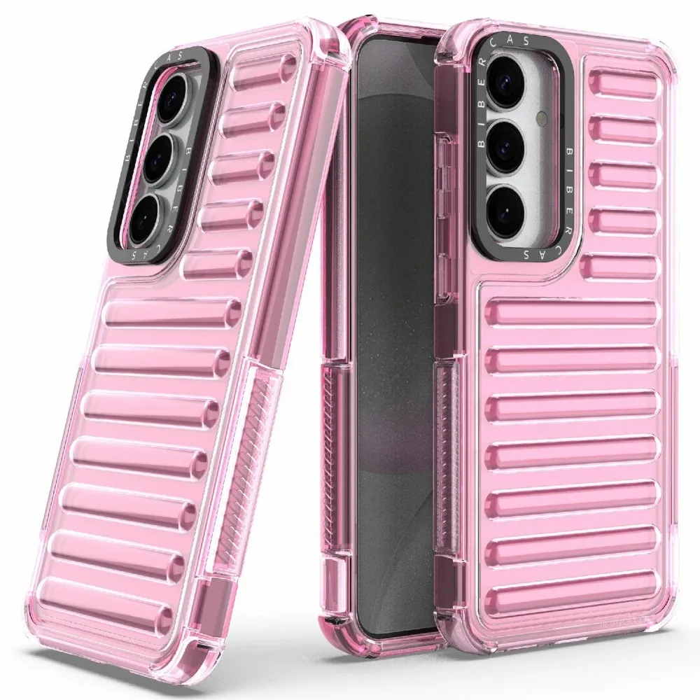 Csíkos tartós borító Samsung Galaxy S25+ készülékhez - világos rózsaszín