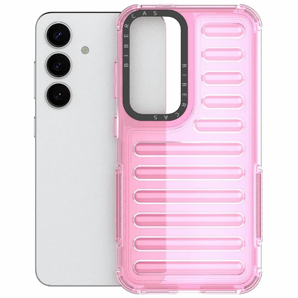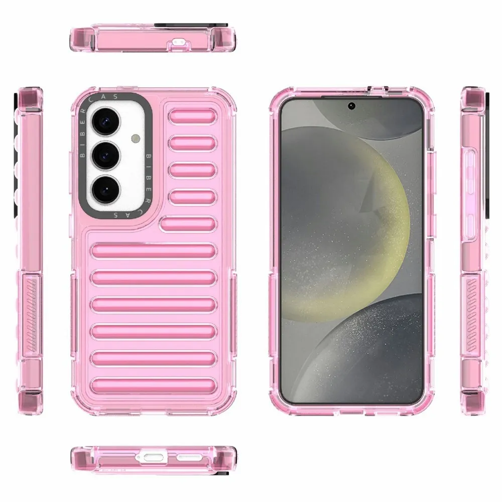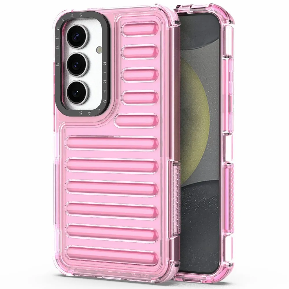 Csíkos tartós borító Samsung Galaxy S25 készülékhez - világos rózsaszín