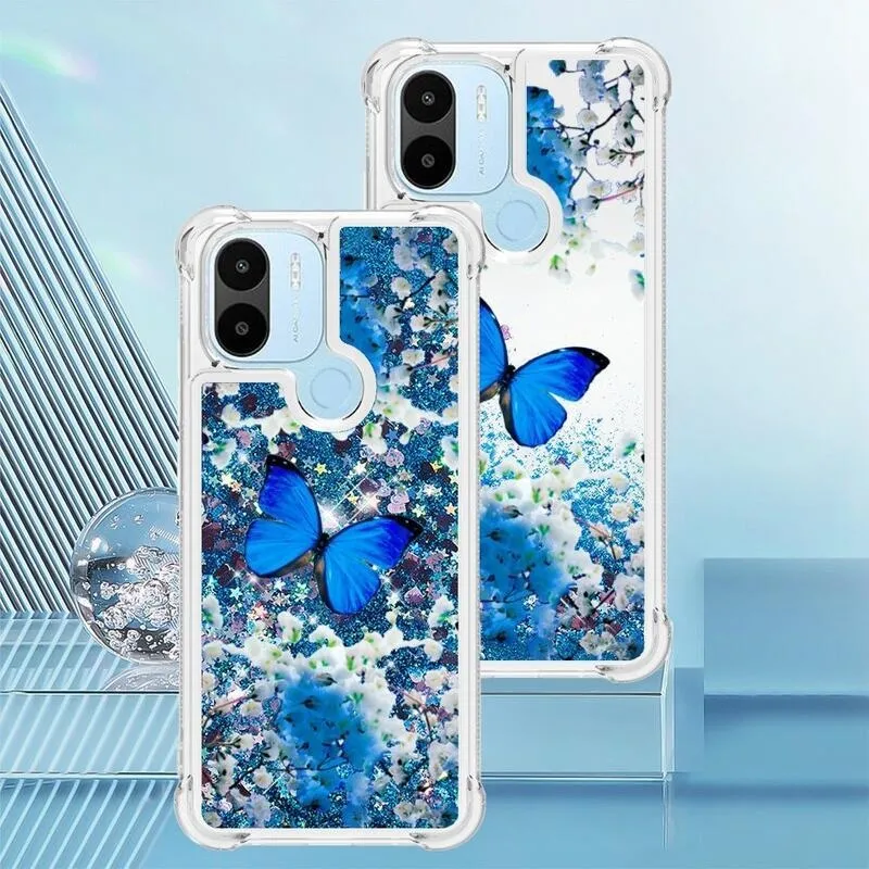 Csillogó szilikon tok Xiaomi Redmi A1+/A2+ készülékhez kék pillangó motívummal