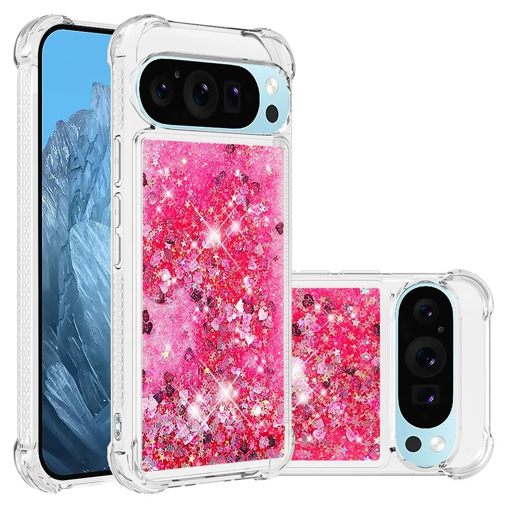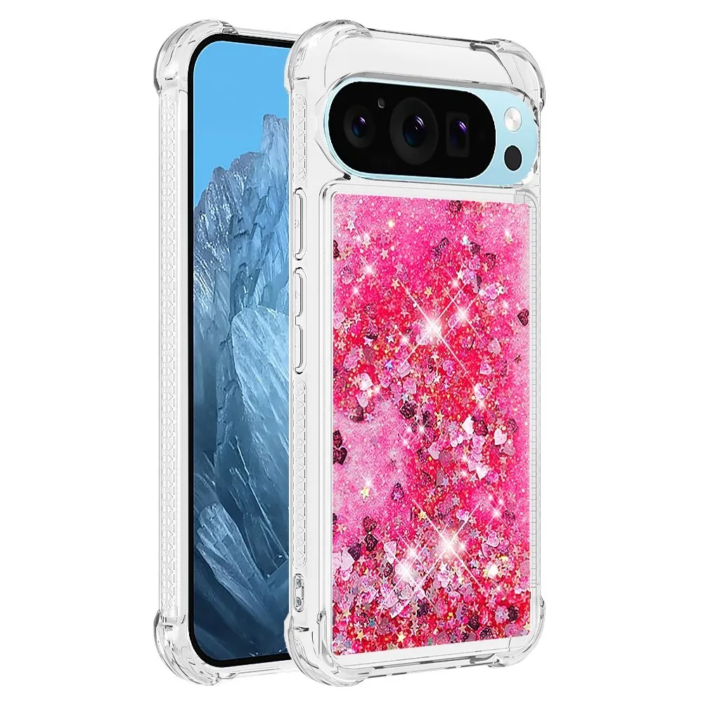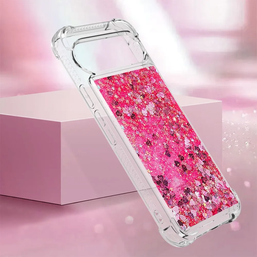 Csillogó homokóra zselés tok Google Pixel 10 Pro/Pixel 10 - rózsaszín/szívek